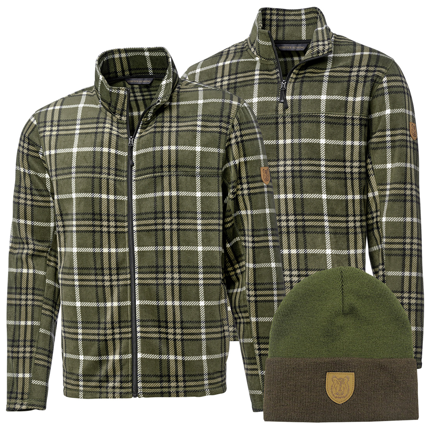 Die Rensing Fleecejacke in Kombination mit dem Rensing Fleecetroyer und der Rensing Mütze als 3er Pack, leicht und weich, ideal zum Unterziehen. Jacke mit 2 Seitentaschen mit Reißverschluss und durchgehender Frontreißverschluss. Troyer mit kurzer Reißverschluss für einfaches An- und Ausziehen. Angenehm weiche und strapazierfähige Strick-Mütze. Elastisch und komfortabel, sitzt sicher auch bei Bewegung. Umschlag mit Kunstleder-Patch.