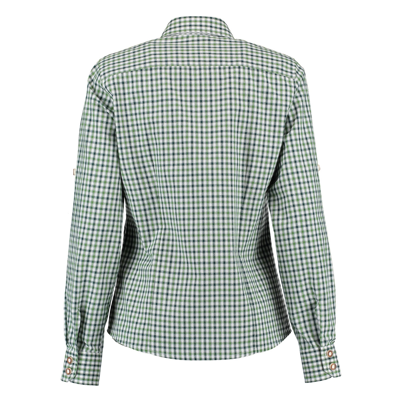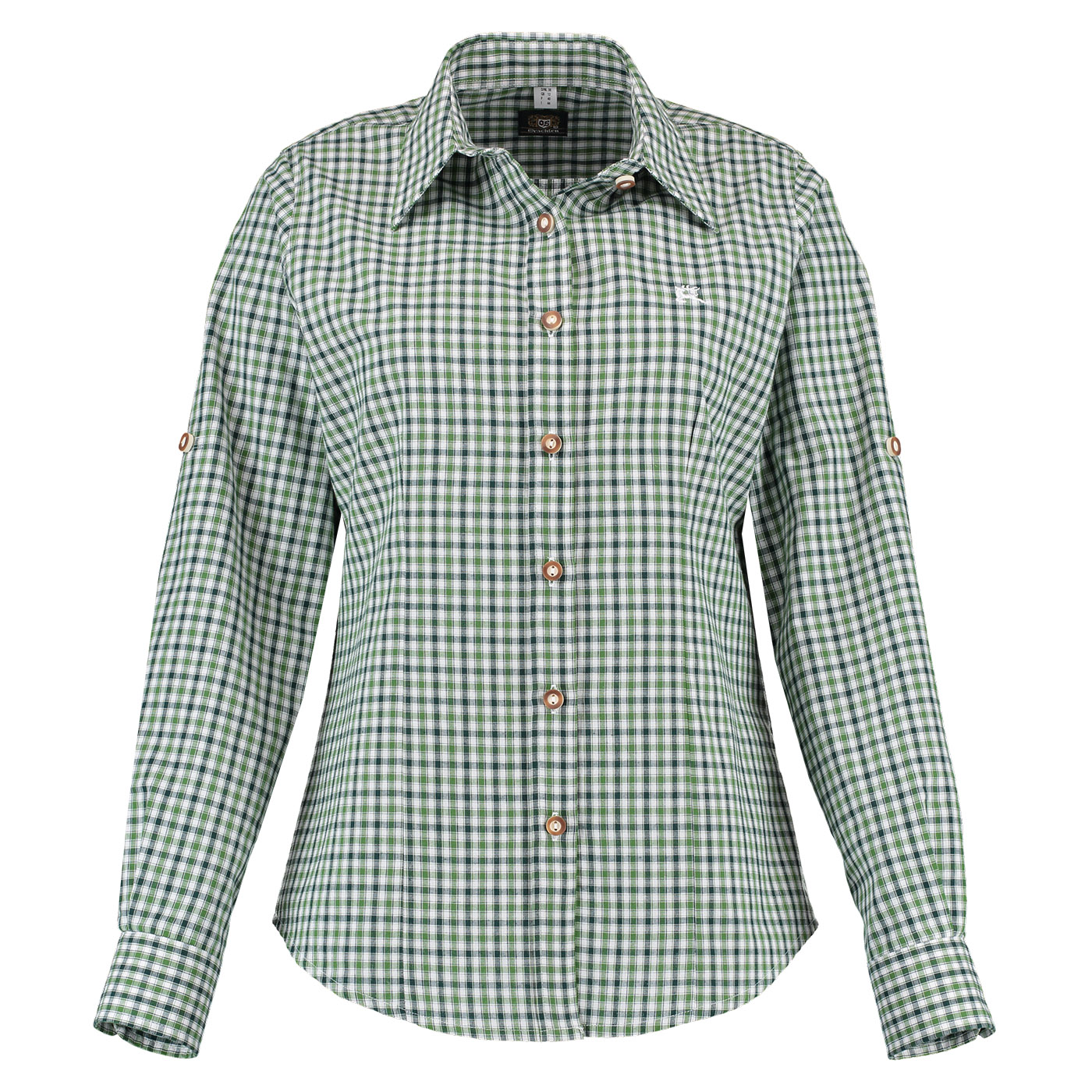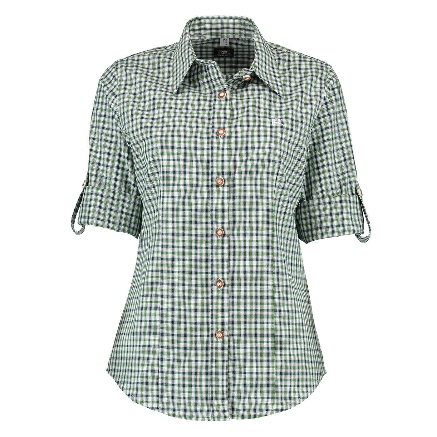 Diese klassische, taillierte Bluse von OS-Trachten ist eine tolle Ergänzung für jede Jägerin. Die Damenbluse mit durchgehender Knopfleiste, Knöpfen in Hirschhornoptik und abgerundetem Saum bietet eine elegante Passform und schmeichelt gekonnt jeder Figur. Bestens geeignet für alle Outdooraktivitäten wie Jagd, Hundesport oder Wandern. Bitte Waschhinweise beachten.