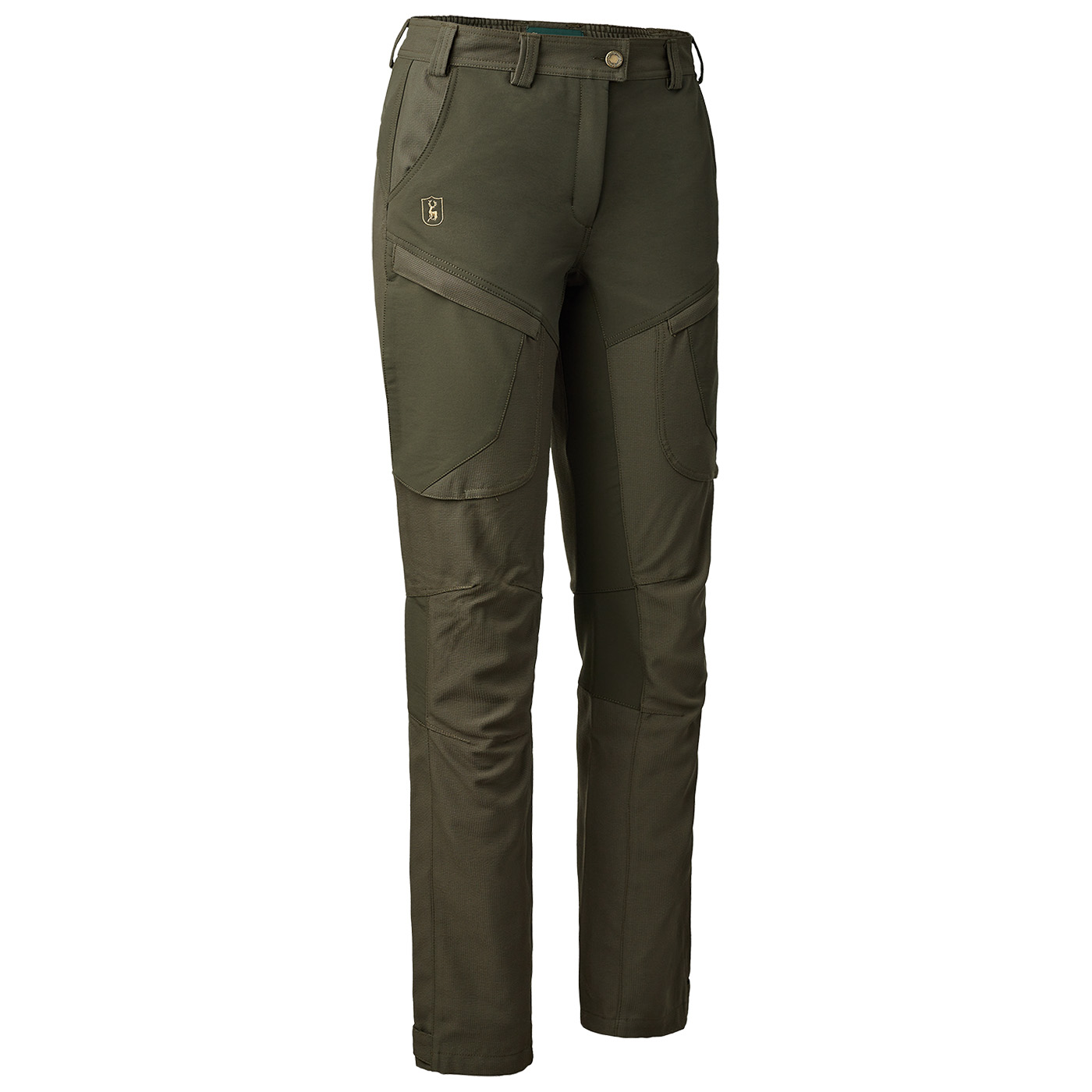 Mit dem charakteristischen 4-Wege-Stretch bietet die wasserabweisende Lady Ann Extreme Hose von Deerhunter ultimative Flexibilität und Bewegungsfreiheit. In sämtlichen funktionellen Taschen kann alles untergebracht werden, was Sie in Wald und Flur benötigen, von der Jagdausrüstung bis hin zu Outdoor-Utensilien. Der elastische Einsatz in der Taille, die vorgeformten Knie und das mittels Klettlasche verstellbare Hosenbein sorgen für eine optimale Passform.