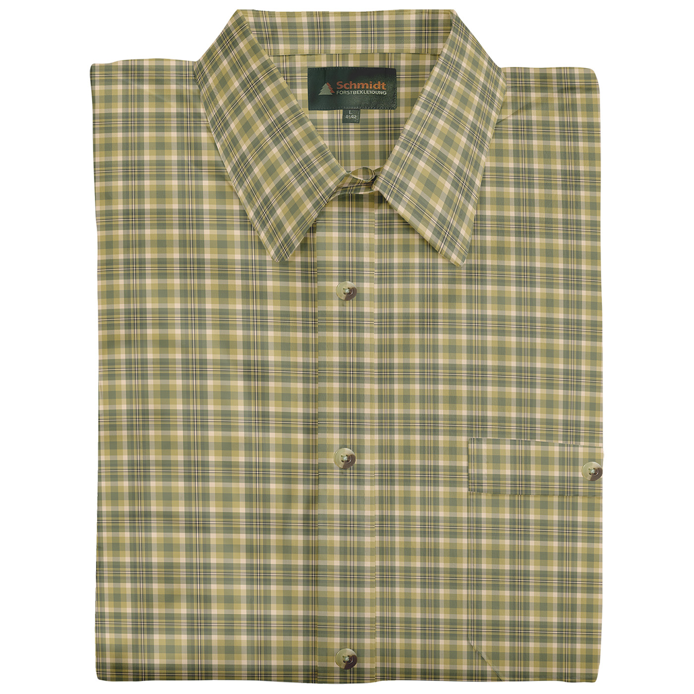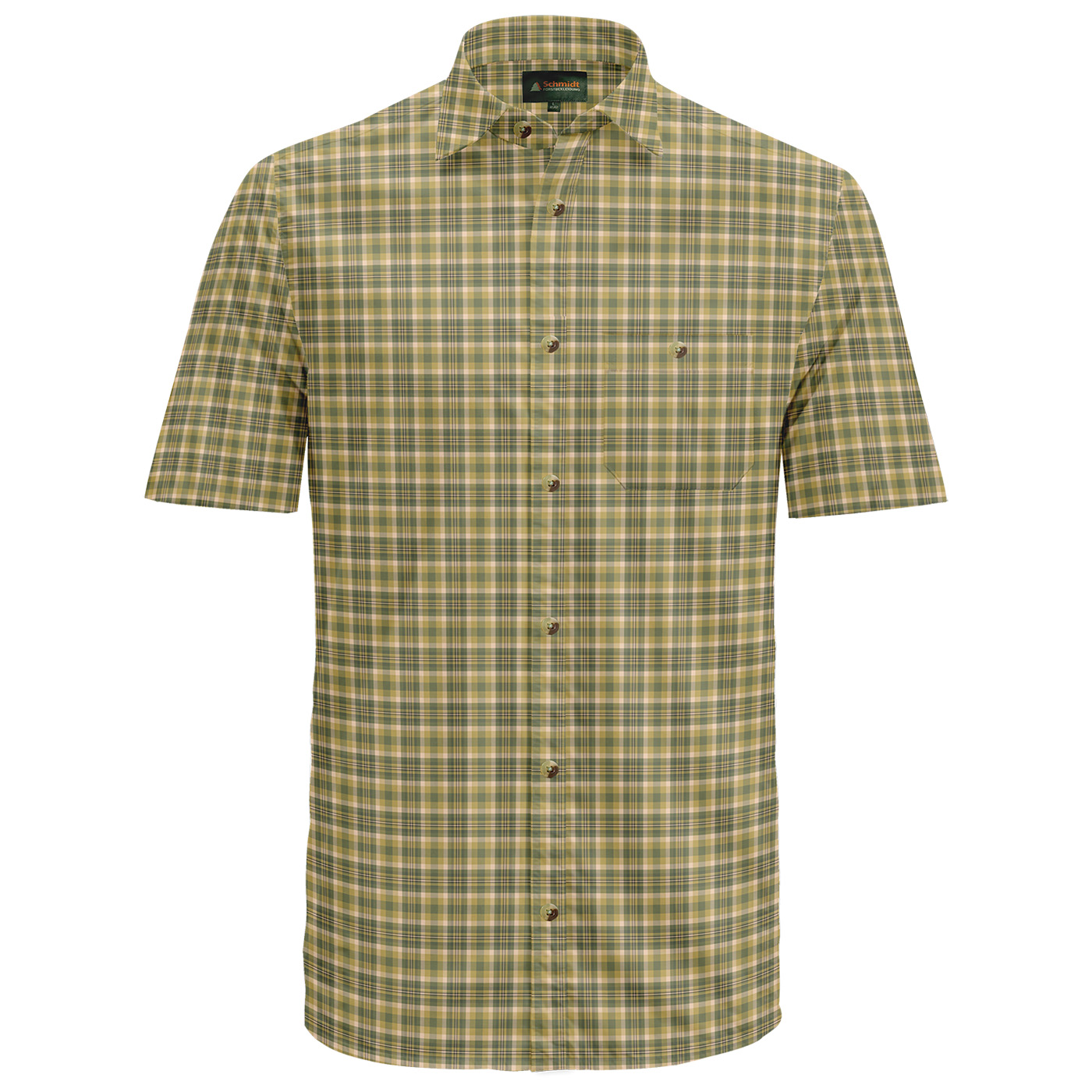 Klassisches kurzarm Karohemd von Schmidt mit Umlegekragen – der perfekte Begleiter für Ihr nächstes Outdoor-Abenteuer oder den Jagdausflug. Hergestellt aus hautsympathischer Baumwolle bietet dieses Hemd höchsten Tragekomfort, selbst bei längeren Einsätzen im Freien. Die bequeme Weite und die optimale Rückenlänge sorgen für eine ideale Passform. Die durchgehende Knopfleiste ist mit stilvollen Knöpfen in Naturoptik versehen, zudem gibt es links eine praktische Brusttasche mit Knopfverschluss für zusätzlichen Stauraum von kleinen Utensilien. Ob auf der Pirsch oder beim Wandern – mit diesem Karohemd sind Sie immer gut ausgestattet.