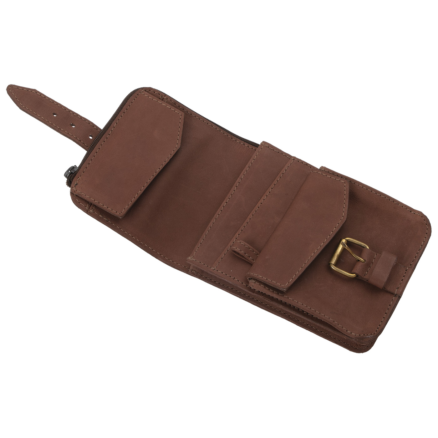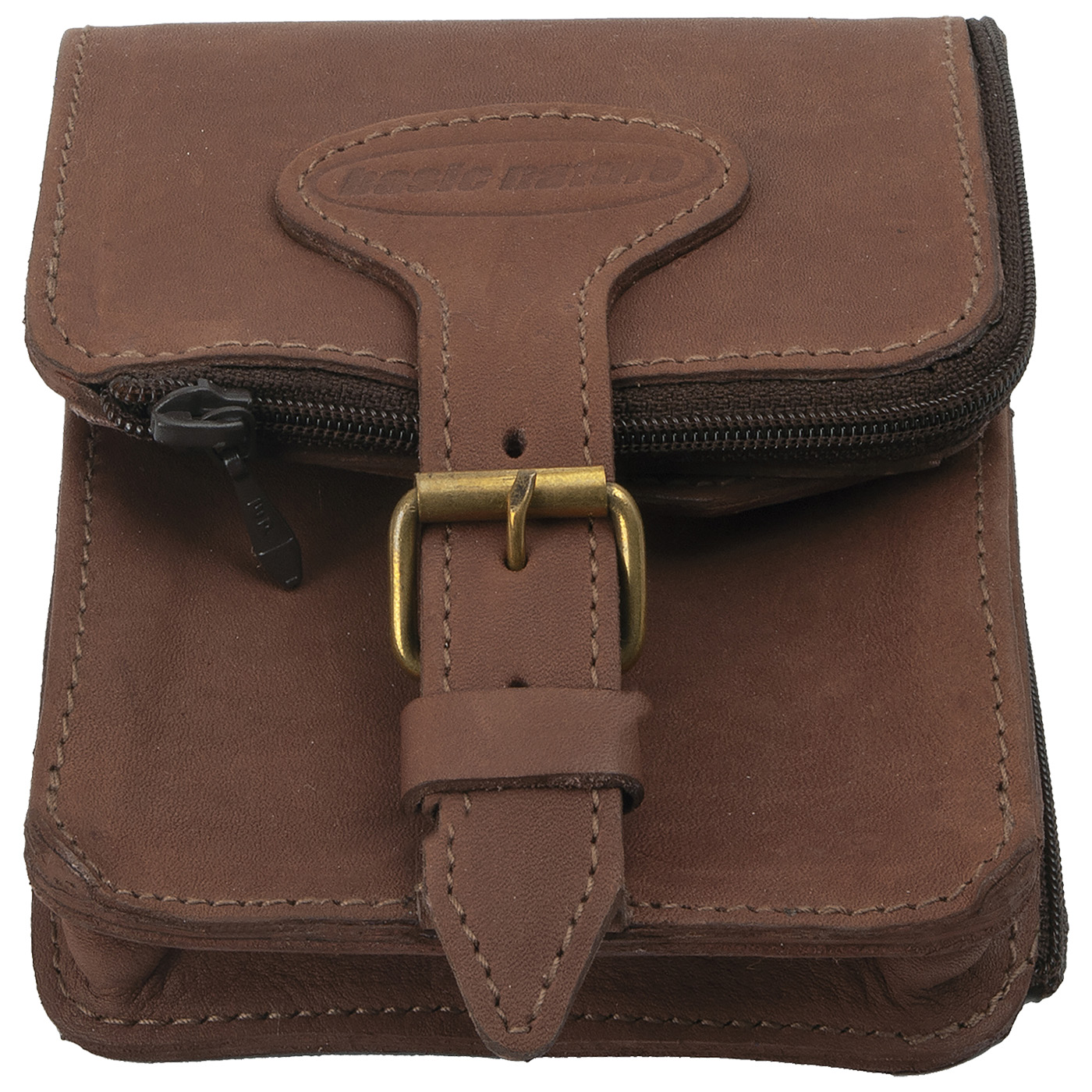 Gürteltasche aus Vollrindleder mit genügend Platz für die wichtigsten Dinge. Fächer für Schlüssel und Schlaufe für den Schlüsselring. Abteile für Geldscheine, Kleingeld, Pass, Papiere, Tickets oder Smartphone stehen zur Verfügung. Durchgehendes Dokumentenfach mit seitlichem Reißverschluss. Zwei robuste Gürtelschlaufen und die handgearbeitete Messingschnalle runden die gelungene Erscheinung ab.