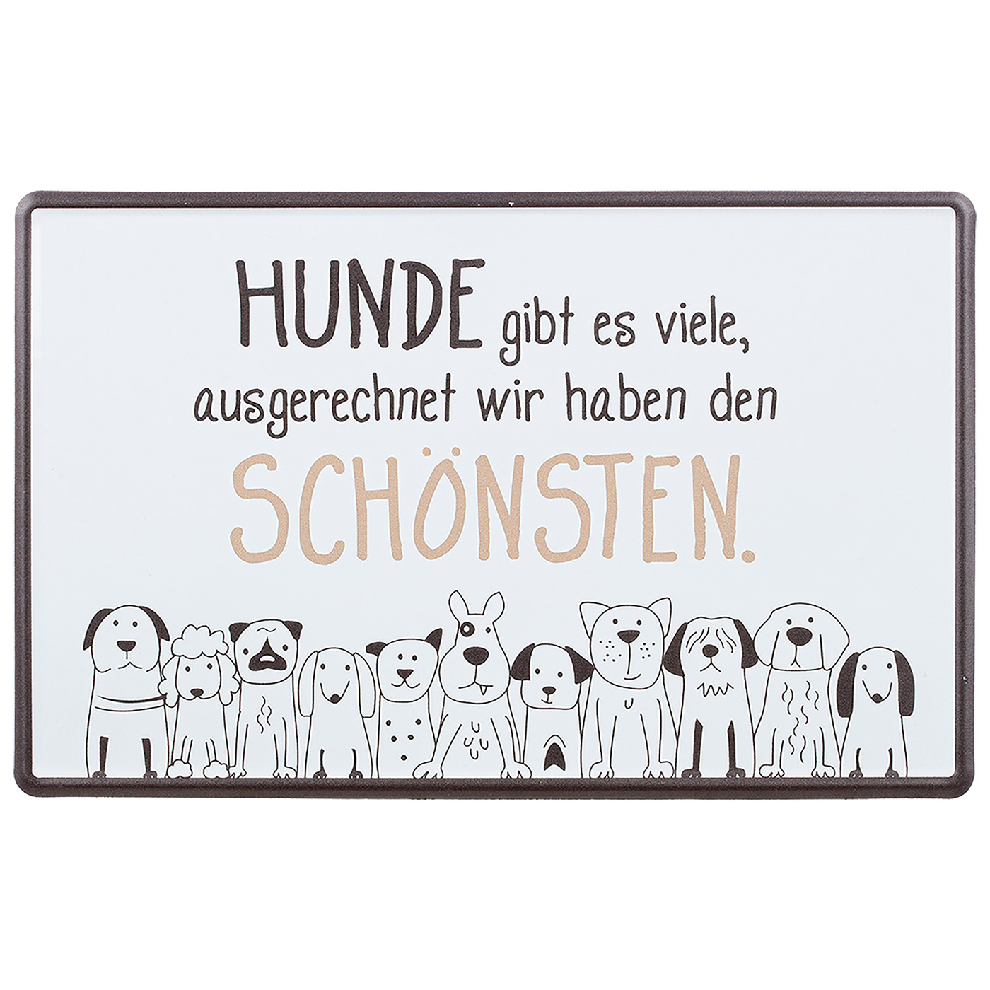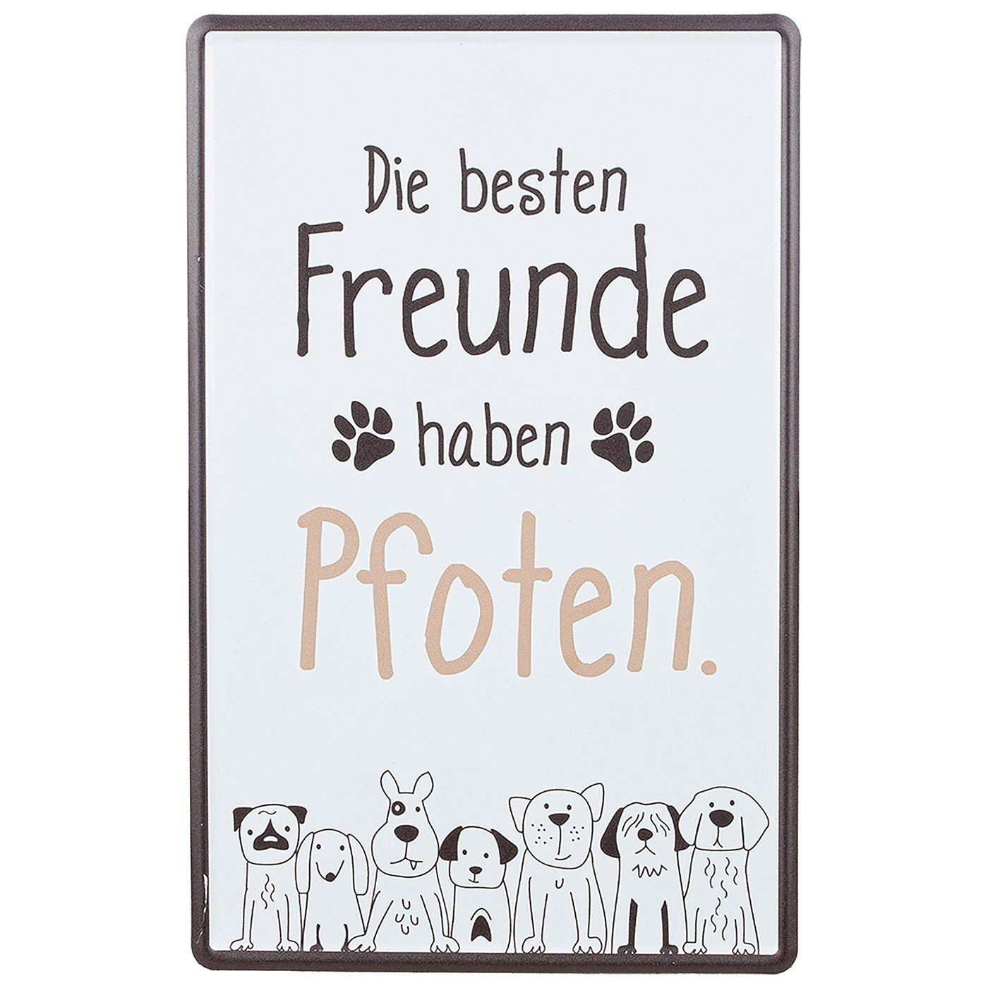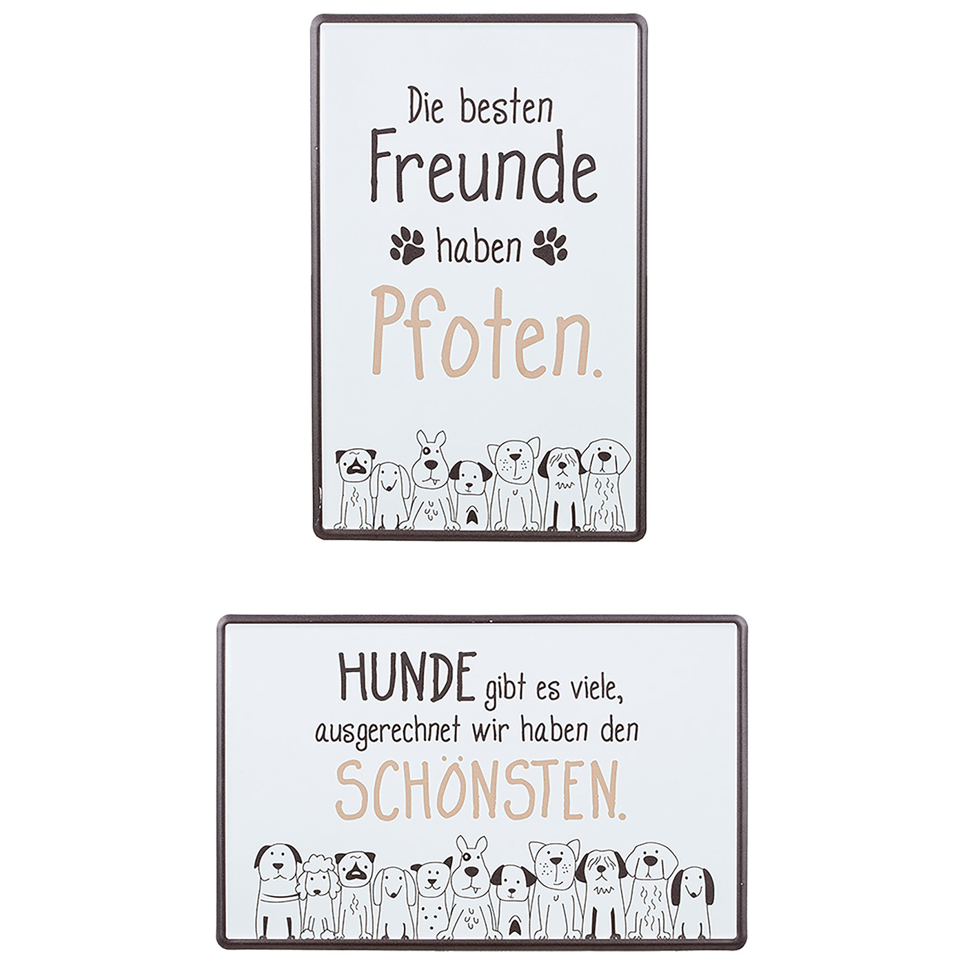 Gilde Blech-Schilder "Hundebande", dekorativ mit humorvollem Spruch und Hundezeichnung, aus weißem Metall, 2 Stück wie abgebildet, 1x Hochformat, 1x Querformat, Maße: 30x19cm.