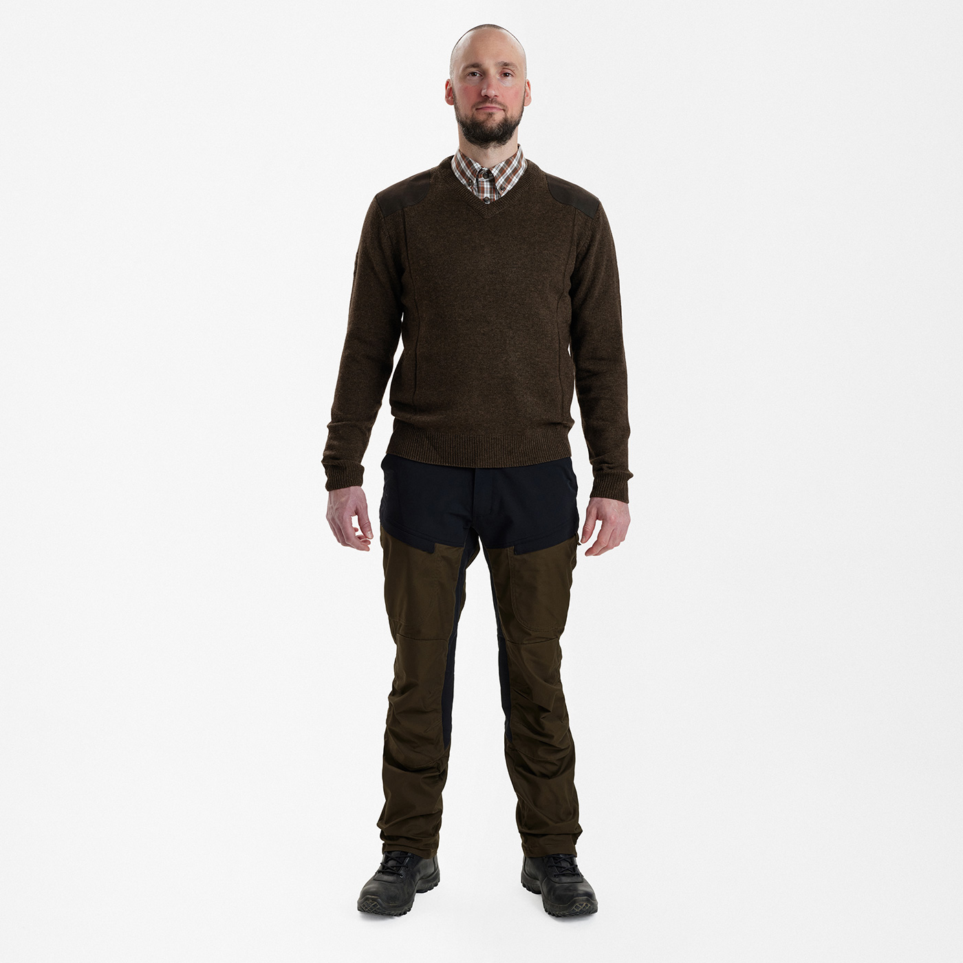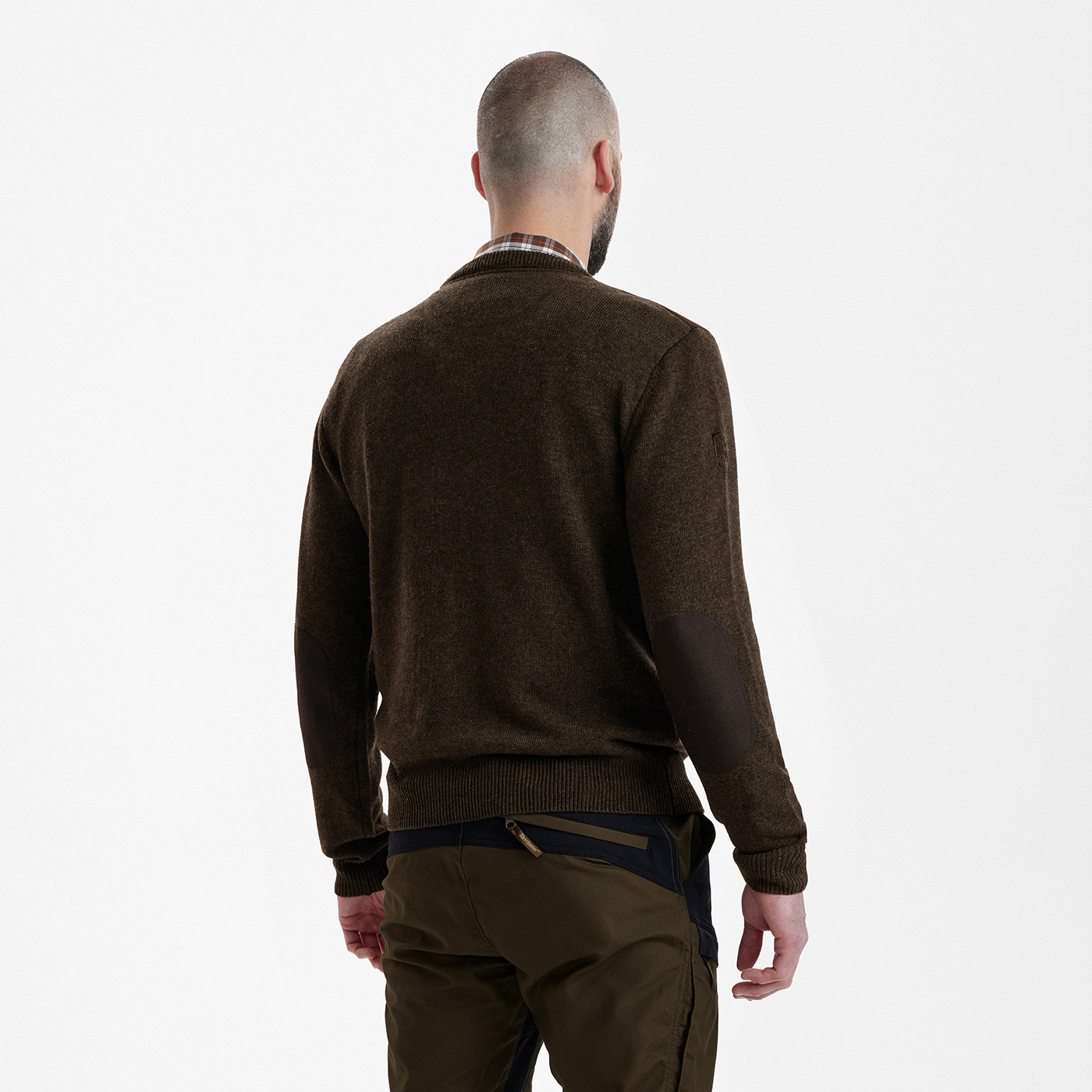 Ein gut sitzender, stilvoller Pullover ist an jedem Jagdtag unentbehrlich. Der DEERHUNTER Sheffield-Pullover mit V-Ausschnitt aus Schafswolle hat an Schulter und Ellbogen Einsätze aus Wildleder-Immitat. Für eine bequeme Passform enthält dieses klassische Strickmodell etwas Elasthan.