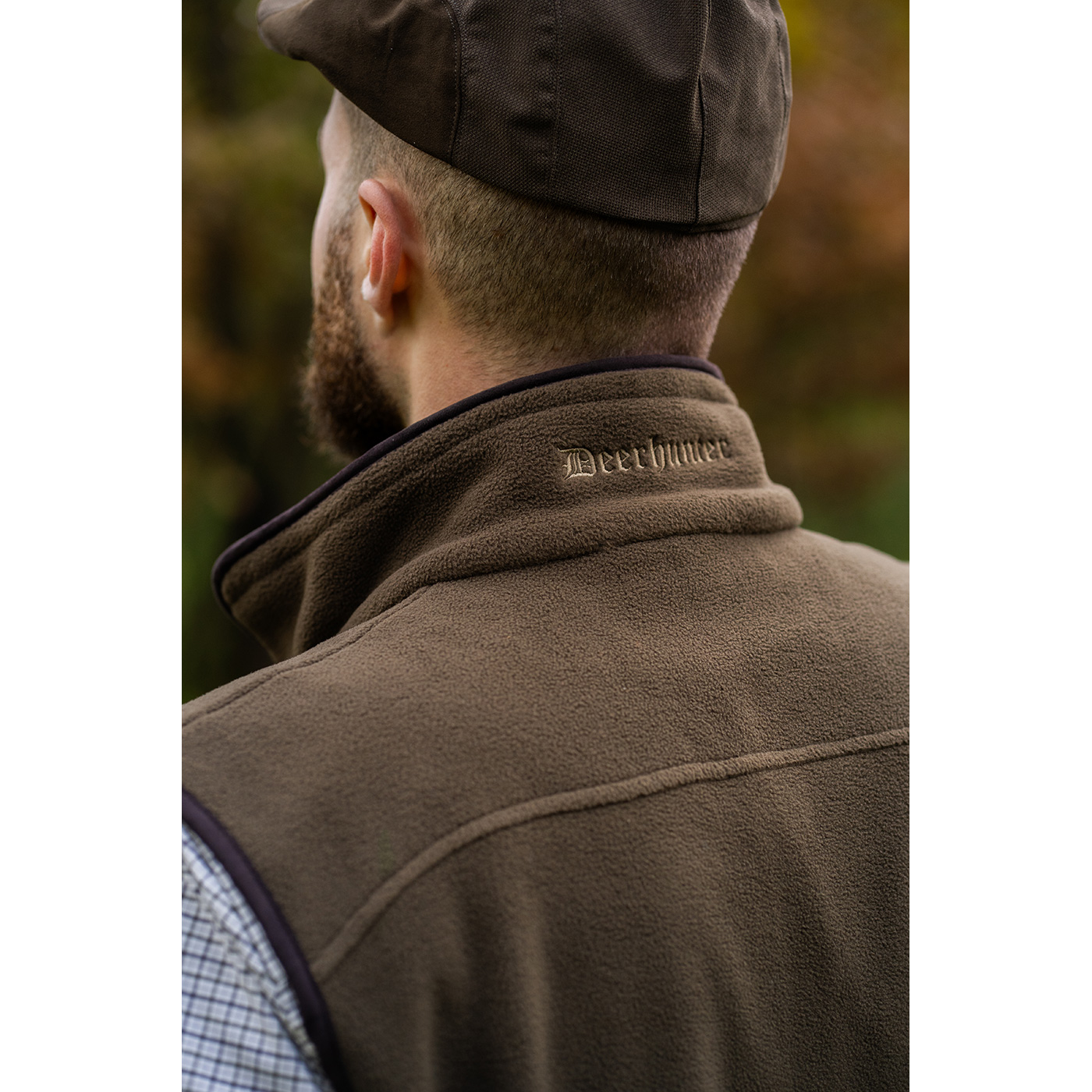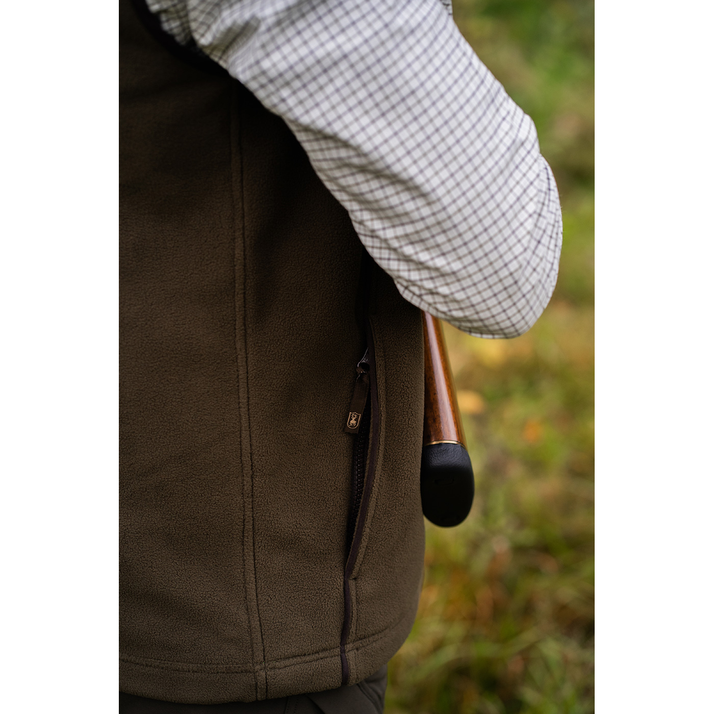 Die Eagle Fleece Weste ist ein praktisches Fleecemodell mit Stretchanteil der Eagle-Serie. Sie hat elegante Details aus Wildlederimitat, die den traditionellen Jagdstil widerspiegeln und passt gut zu den anderen Jacken und Hosen der Serie. Das Design ist schlicht und elegant und der verstellbare Saum mit Kordelzug sorgt für eine gute Passform. Praktische Reißverschlusstaschen bieten reichlich Stauraum für alle Jagdutensilien. Diese praktische Fleeceweste ist ein unverzichtbarer Bestandteil jeder Outdoor-Garderobe und bietet als Zwischenschicht in den kälteren Monaten zusätzliche Isolierung. Sie kann auch als zusätzliche wärmende Schicht getragen werden, wenn es morgens oder abends kühl ist.