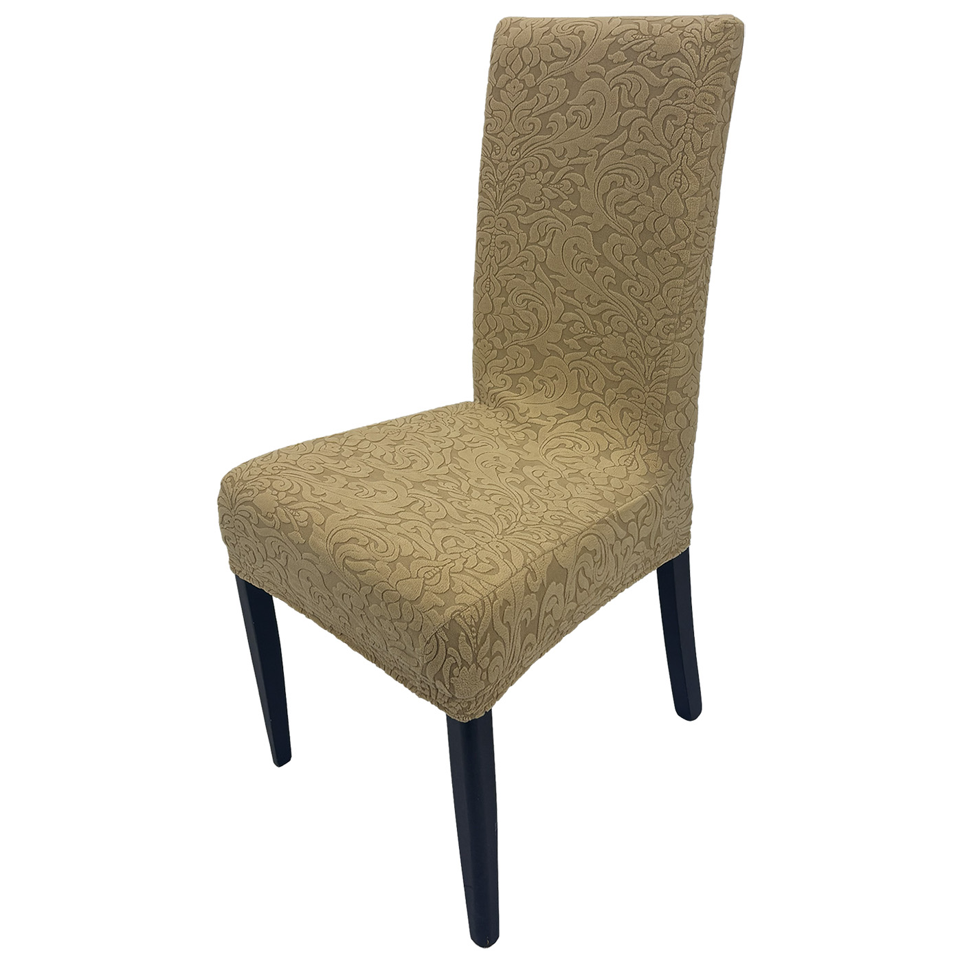Die Stuhlhusse mit floral-ornamentalem Muster verleiht Esszimmer-, Küchen- oder Veranstaltungsstühlen im Handumdrehen eine elegante und wohnliche Ausstrahlung. Das dekorative, leicht klassische Design setzt stilvolle Akzente und sorgt für eine hochwertige Optik. Dank des bi-elastischen Materials passt sich die Husse gut an die Stuhlform an und sitzt angenehm straff. Der Materialmix aus 95 % Polyester und 5 % Elasthan macht sie zu einer praktischen Lösung, um Stühle optisch aufzuwerten und zugleich vor Abnutzung zu schützen.