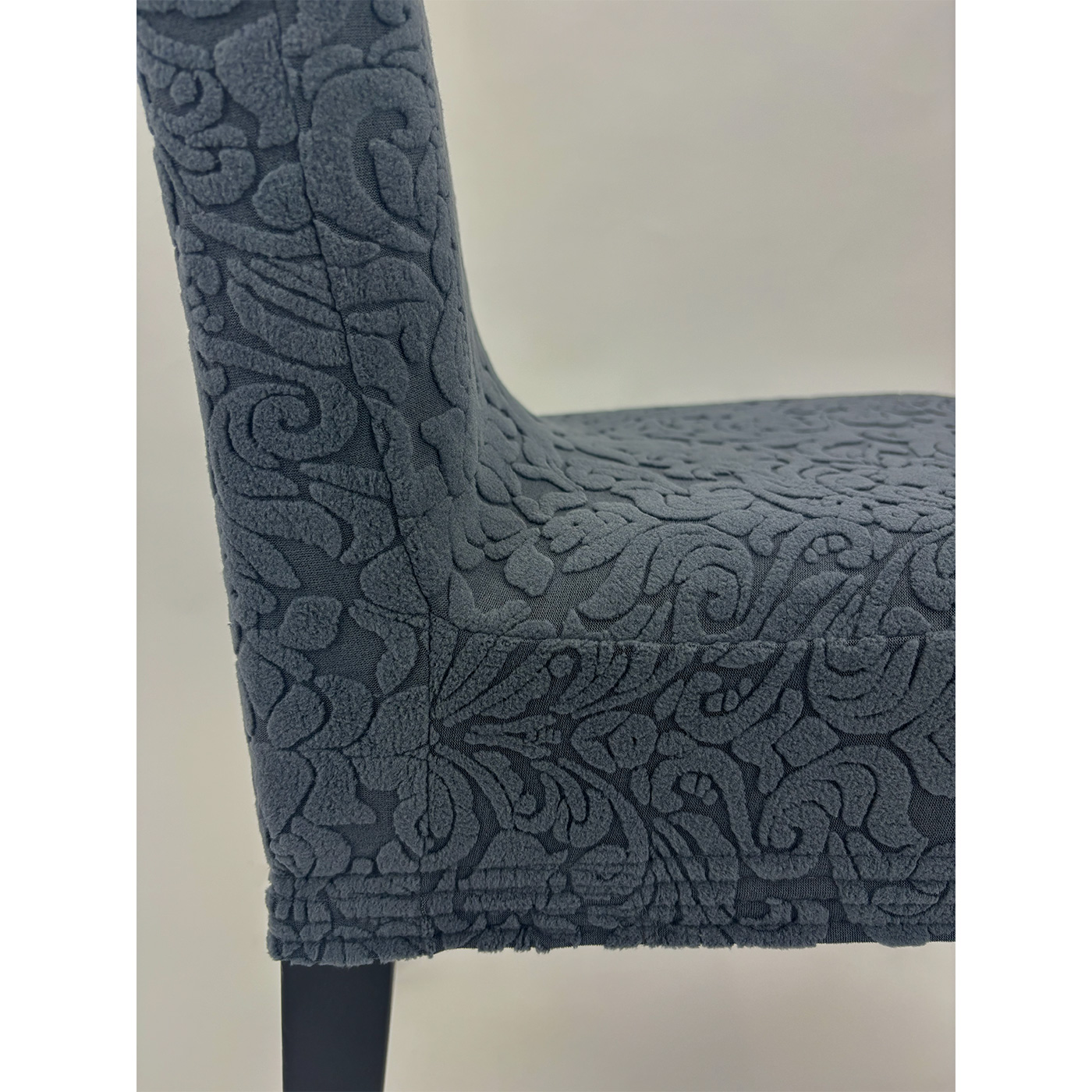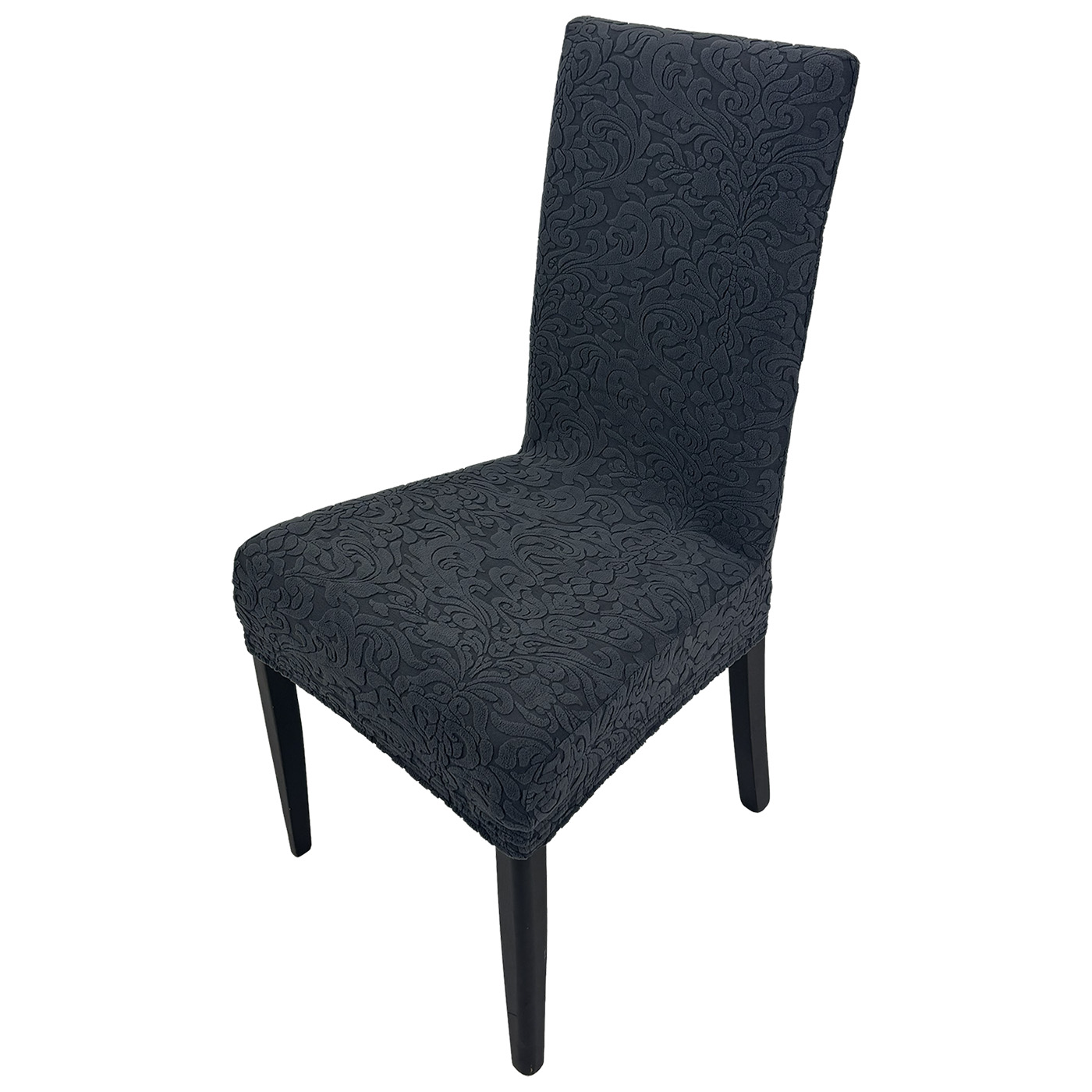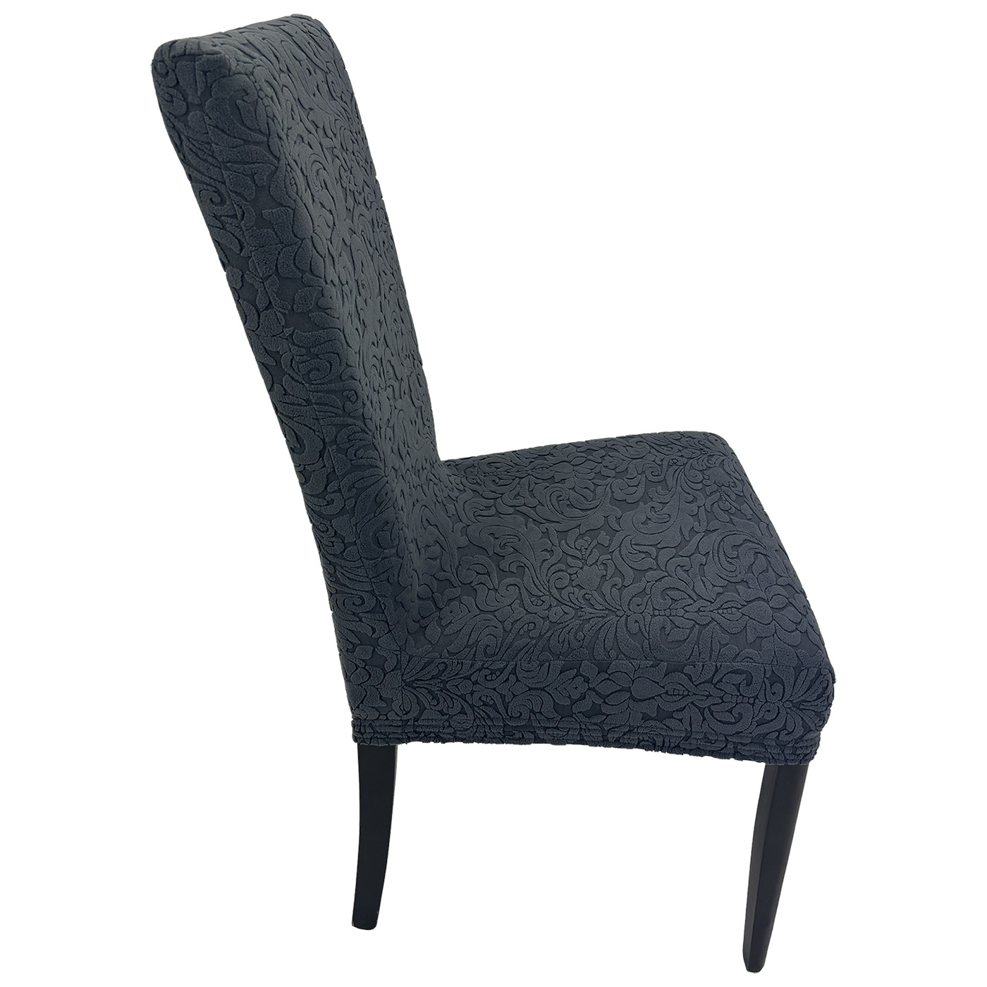 Die Stuhlhusse mit floral-ornamentalem Muster verleiht Esszimmer-, Küchen- oder Veranstaltungsstühlen im Handumdrehen eine elegante und wohnliche Ausstrahlung. Das dekorative, leicht klassische Design setzt stilvolle Akzente und sorgt für eine hochwertige Optik. Dank des bi-elastischen Materials passt sich die Husse gut an die Stuhlform an und sitzt angenehm straff. Der Materialmix aus 95 % Polyester und 5 % Elasthan macht sie zu einer praktischen Lösung, um Stühle optisch aufzuwerten und zugleich vor Abnutzung zu schützen.