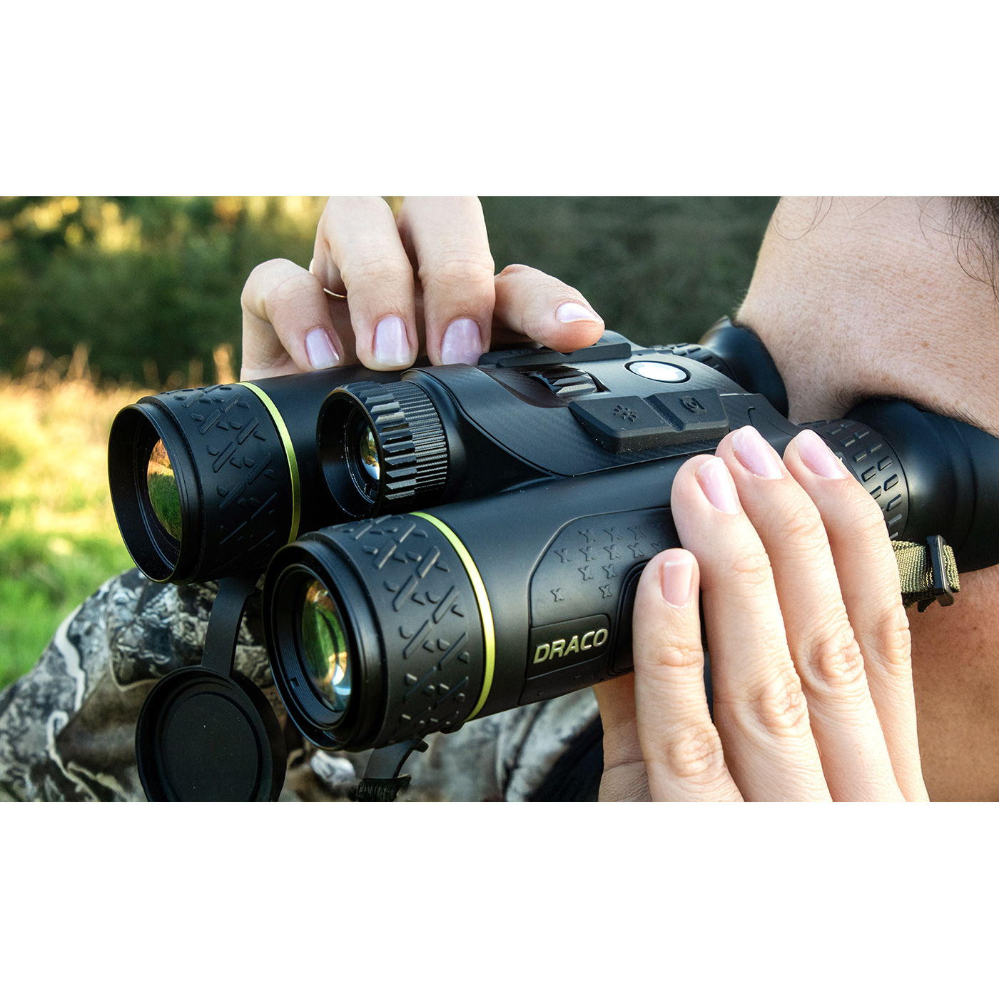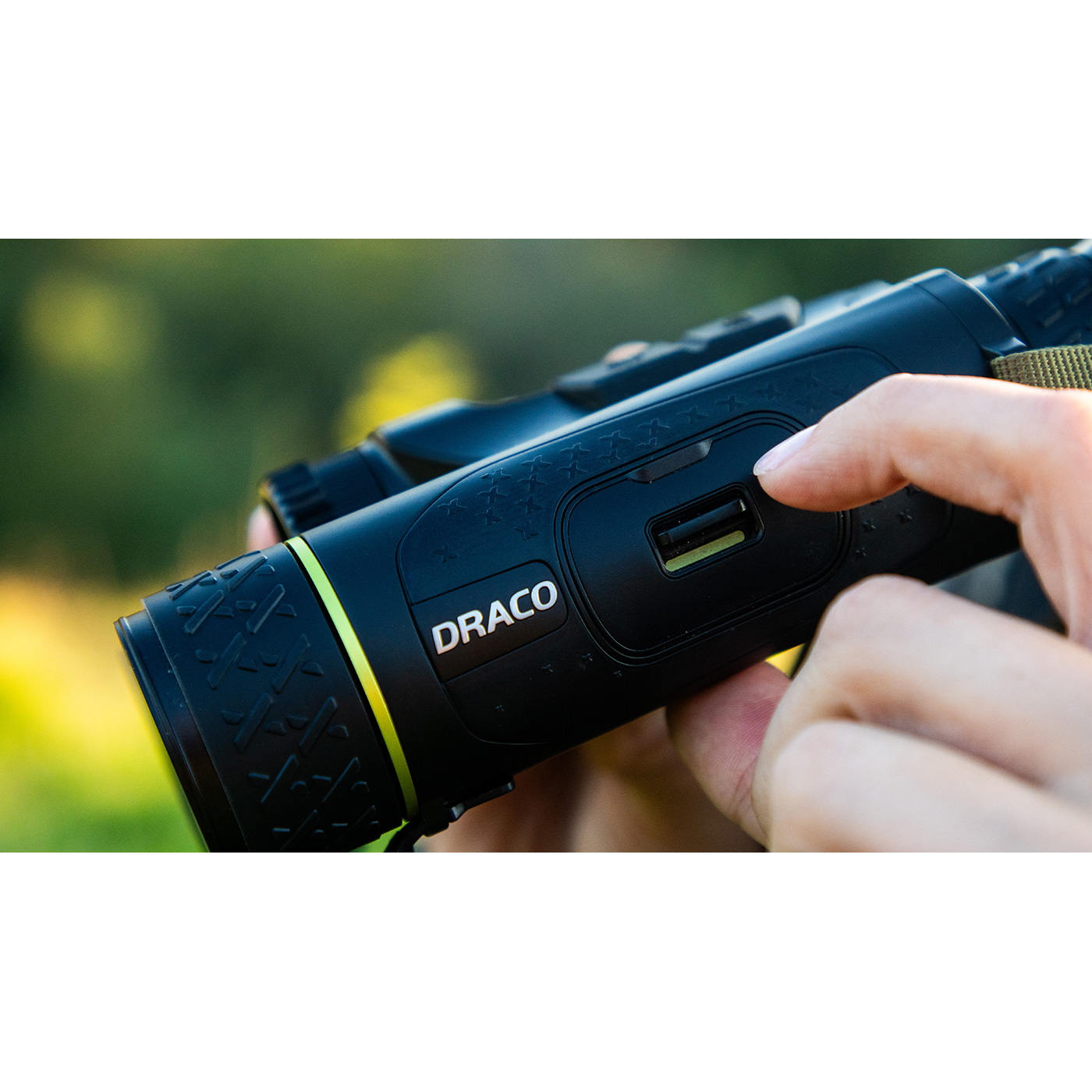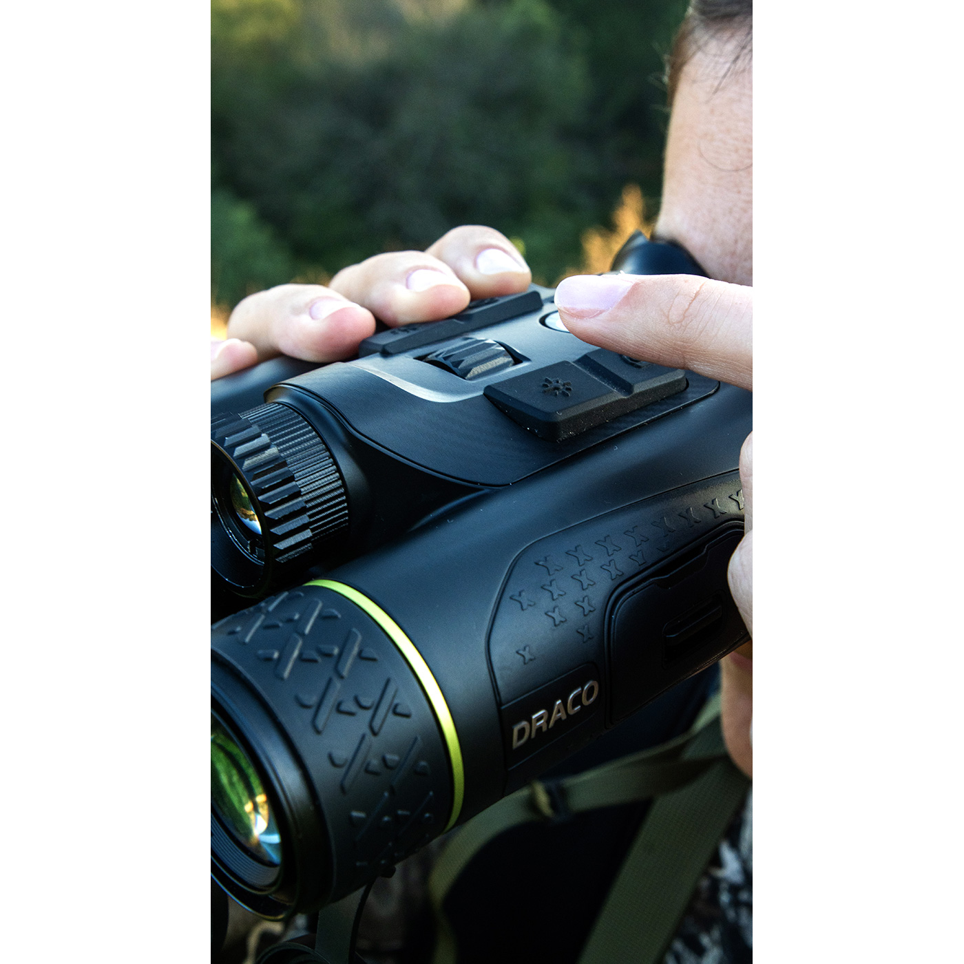 Mit nur rund 600 Gramm ist der Draco ein echtes Leichtgewicht unter den Multifunktionsferngläsern. Die ergonomische Form liegt perfekt in der Hand und ermöglicht auch bei längeren Einsätzen eine mühelose Bedienung. So behalten Sie jederzeit den Überblick – ob auf der Pirsch, im Revier oder bei der nächtlichen Wildbeobachtung.