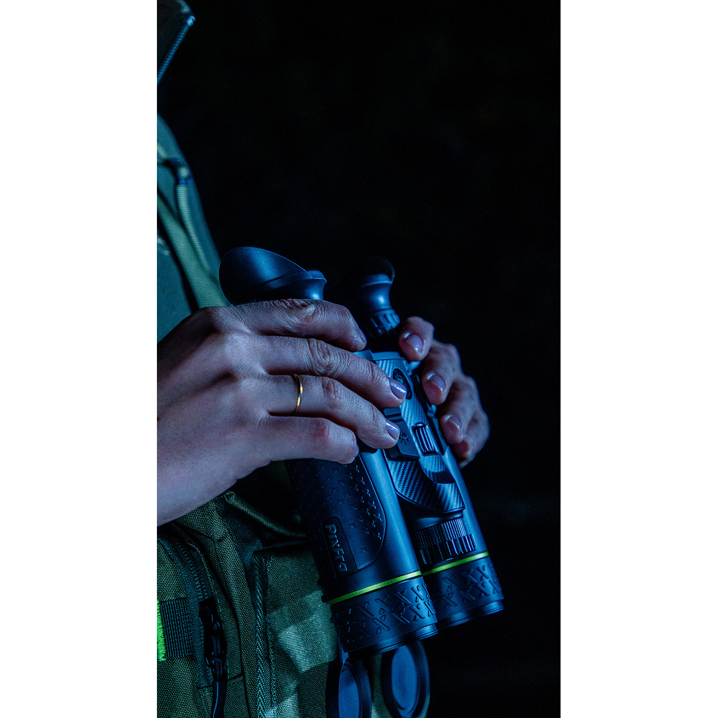 Die exklusive Pixfra-Brusttasche fixiert den Draco sicher am Körper. Selbst wenn Sie ihn loslassen, bleibt er geschützt und griffbereit – perfekt für den schnellen Wechsel zwischen Beobachtung und Bewegung.