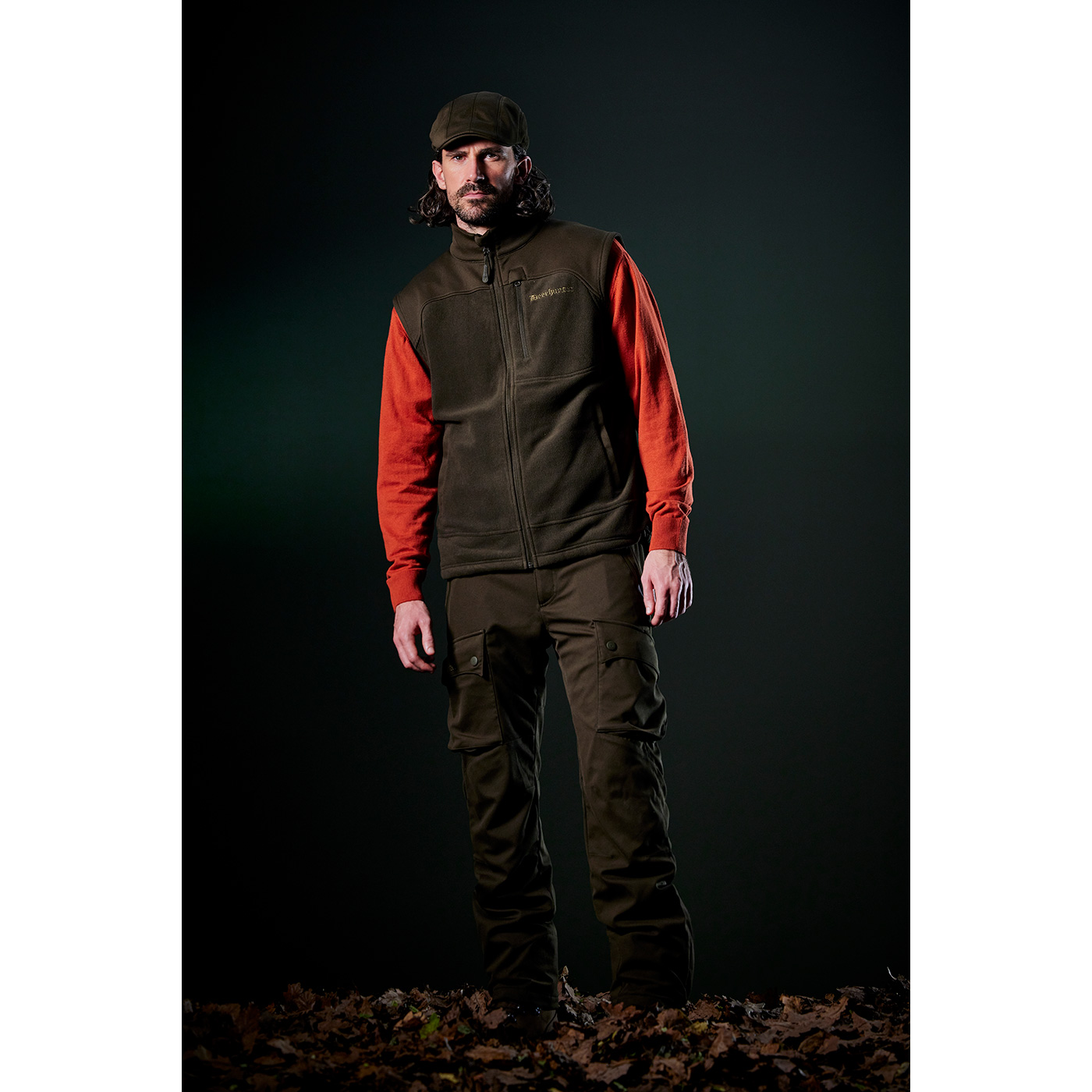 Die Fleeceweste Muflon Pro Fleece ist eine leichte, isolierende Zwischenschicht, die den Oberkörper wärmt, ohne die Bewegungsfreiheit einzuschränken. Hergestellt aus recyceltem Polyesterfleece mit beidseitiger Antipilling-Ausrüstung, bietet sie langanhaltende Haltbarkeit und ein weiches Tragegefühl – auch nach häufiger Nutzung. Der Schnitt ist hinten etwas länger für besseren Schutz, während der verstellbare Saum eine individuelle Passform ermöglicht. Funktionelle Details wie eine Brusttasche mit Reißverschluss und zwei verdeckte Fronttaschen für Kleinigkeiten. Getragen über einem Hemd oder unter einer Jacke ergänzt diese Weste ein vielseitiges, atmungsaktives Schichtsystem für den ganztägigen Einsatz im Revier, bestens geeignet für Alltag und Jagd.