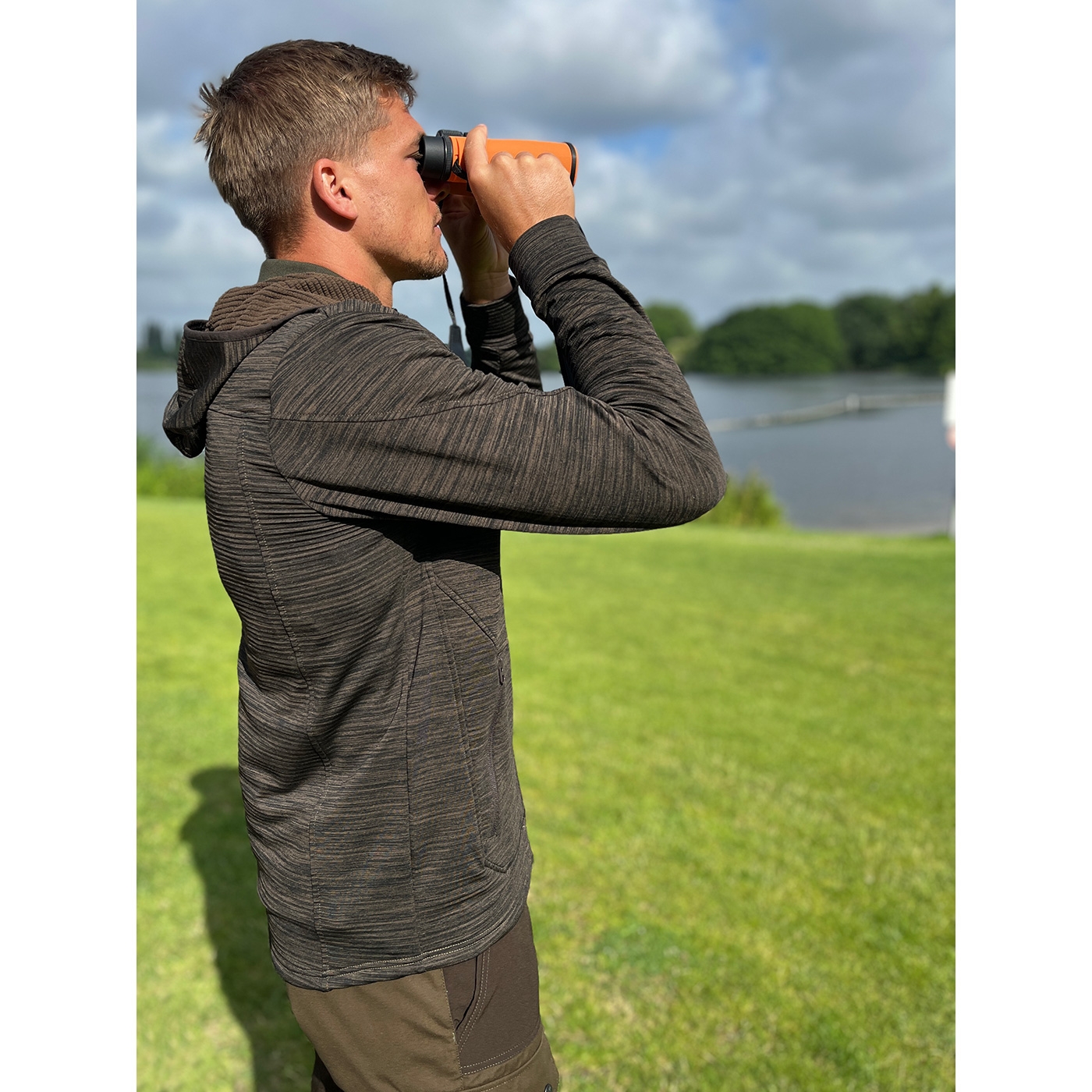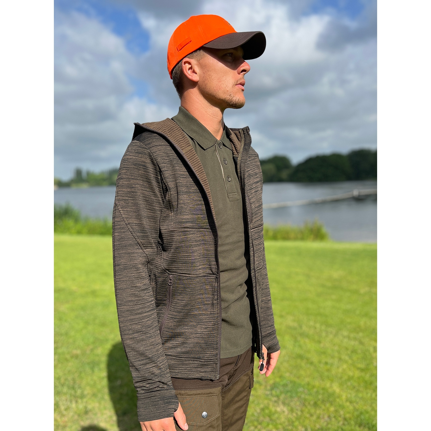 Die Rensing Funktions Fleecejacke Ash in braun meliert – die ideale Fleecejacke für Alltag, Jagd und Outdoor. Diese isolierende Jacke bietet optimalen Komfort und Schutz für Ihre Jagdabenteuer. Mit praktischen Details wie einer Brusttasche und zwei Seitentaschen mit Reißverschluss, einer Kapuze, Daumenöffnungen an den Ärmelenden und einem verstellbaren Saum ist sie ein unverzichtbarer Begleiter. Die angeraute Innenseite mit Waffel-Struktur sorgt für zusätzliche Wärme.