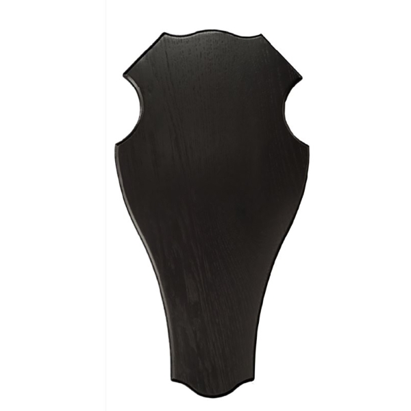 Massive Eiche dunkel, mit Ausfräsung und Klammer für Gebissleiste. Perfekte Größe für Hirsche, wie Damhirsche. Maße ca.: H/B/T 28 x 17 x 1,5 cm.