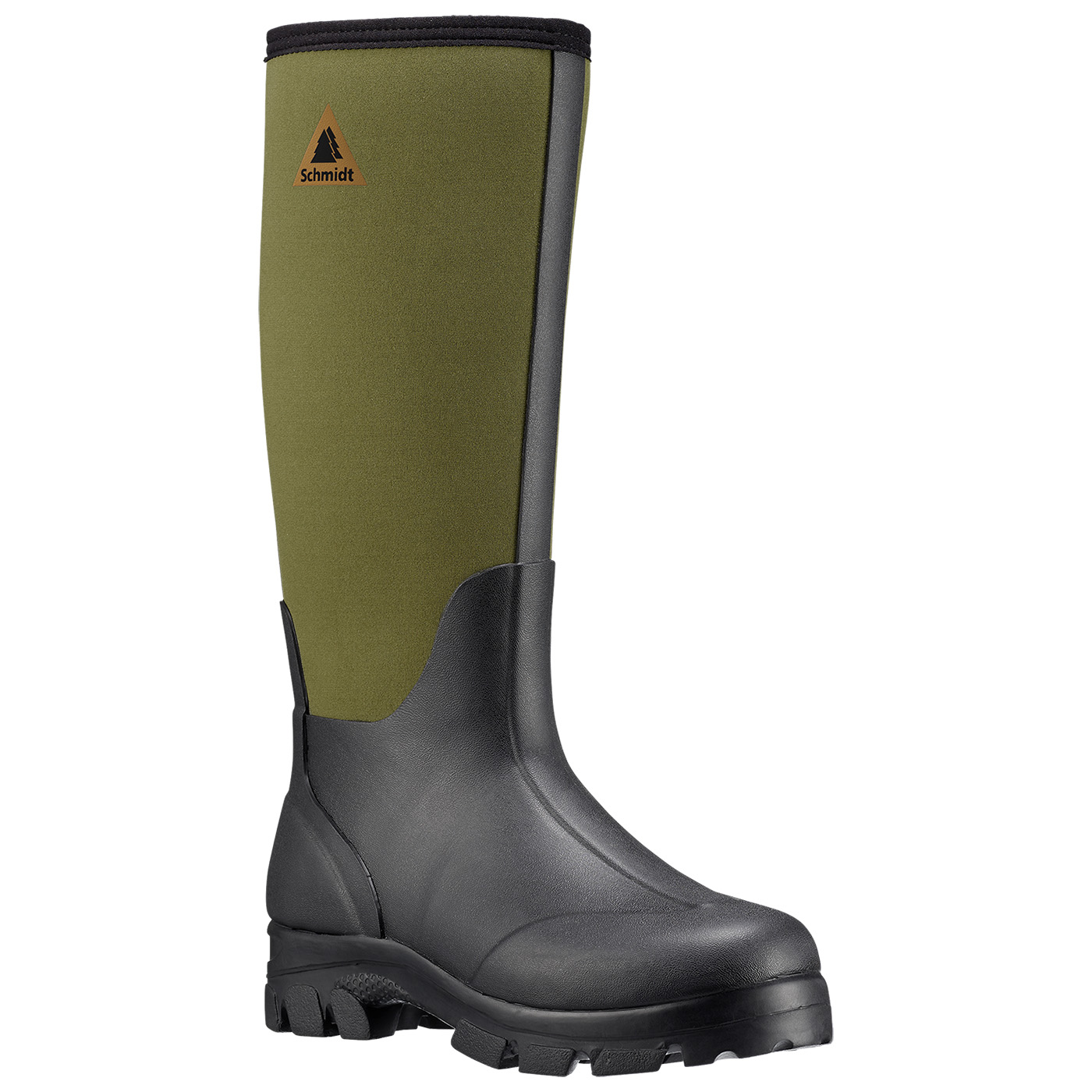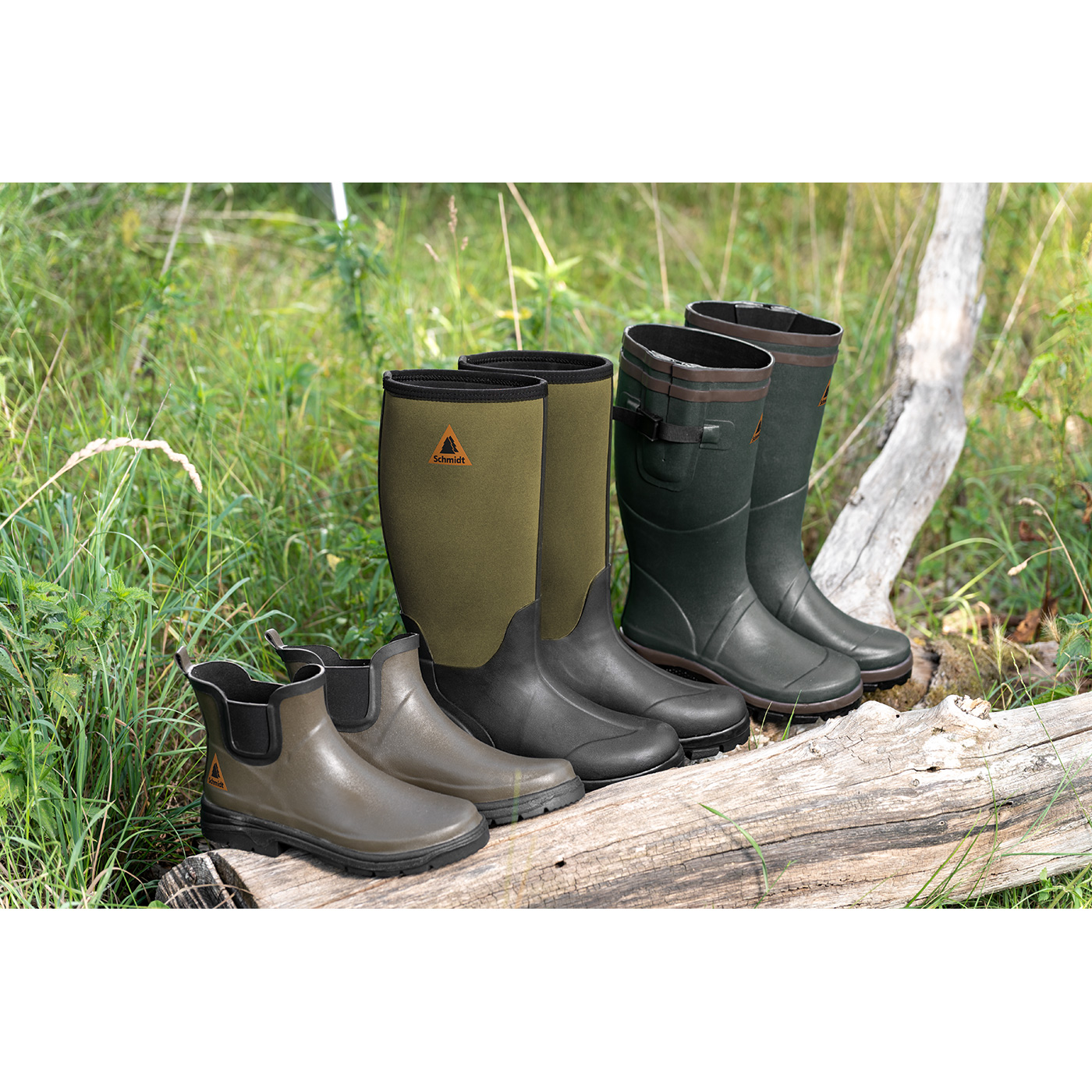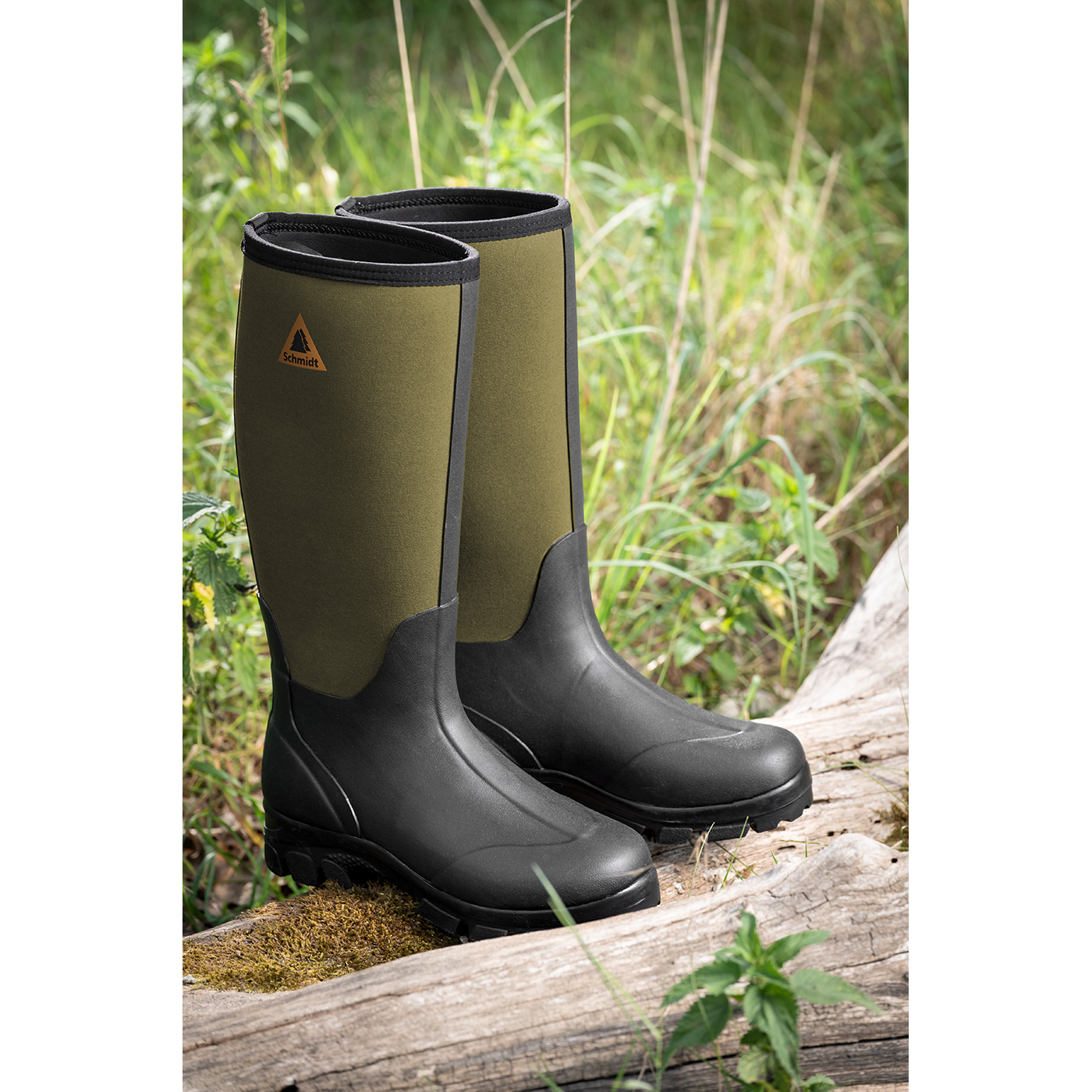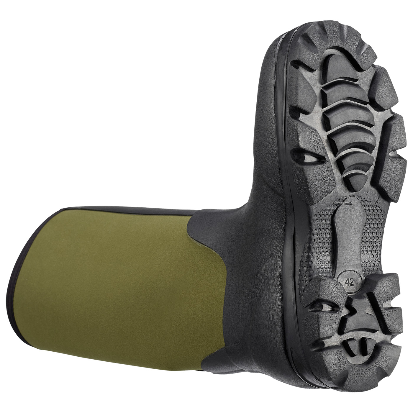 Hochwertige, robuste Materialien für den ultimativen Jäger. Leichte, bequeme Gummistiefel mit wärmenden Neopren-Schaft und Verstärkungen an Ferse und im Zehenbereich. 4,5 mm dickes Neopren für bessere Wasserdichtigkeit und gute Wärmeisolation. Diese komfortablen Gummistiefel mit hohem Schaft schützen zuverlässig von Nässe und Kälte und bieten eine optimale Passform und eine angenehme Bewegungsfreiheit – Ideal für die Jagd im anspruchsvollen Gelände und andere Outdoor-Aktivitäten. Die kräftige, gut profilierte Laufsohle bietet zudem eine hohe Abriebfestigkeit, gute Bodengriffigkeit und sicheren Halt in jedem Gelände.