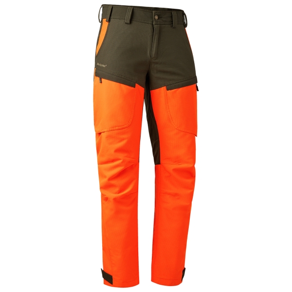 Die Strike Extreme Hose mit Deer-Tex-Membrane ist bestens geeignet für herausfordernde Abenteuer und bietet optimalen Schutz vor extremen Witterungsbedingungen. Die Hose ist atmungsaktiv, wind- und wasserdicht. Das dehnbare Verstärkungsmaterial mit zusätzlichem 4-Wege-Stretch sorgt für mehr Bewegungsfreiheit. Die Hose hat einen Gummizug im hinteren Bund und verstellbare Bänder am unteren Saum, die eine individuelle Passform ermöglichen. Funktionale, durchdacht platzierte Taschen sorgen für ausreichend Stauraum: 2 seitliche Einschubtaschen, 1 Gesäßtasche, 2 Beintaschen, alle mit verdeckten Reißverschlüssen, 1 versteckte Messertasche in der linken Beintasche vervollständigen die Aufbewahrungsmöglichkeiten, die man für einen Tag im Gelände benötigt. Wenn es wärmer wird oder Ihr Aktivitätsniveau steigt, ermöglichen die verdeckten Belüftungsreißverschlüsse an den Oberschenkeln angenehme Kühlung. Vorgeformte Knie und Verstärkungen an Ober- und Unterschenkeln verleihen dieser Hose den letzten Schliff.