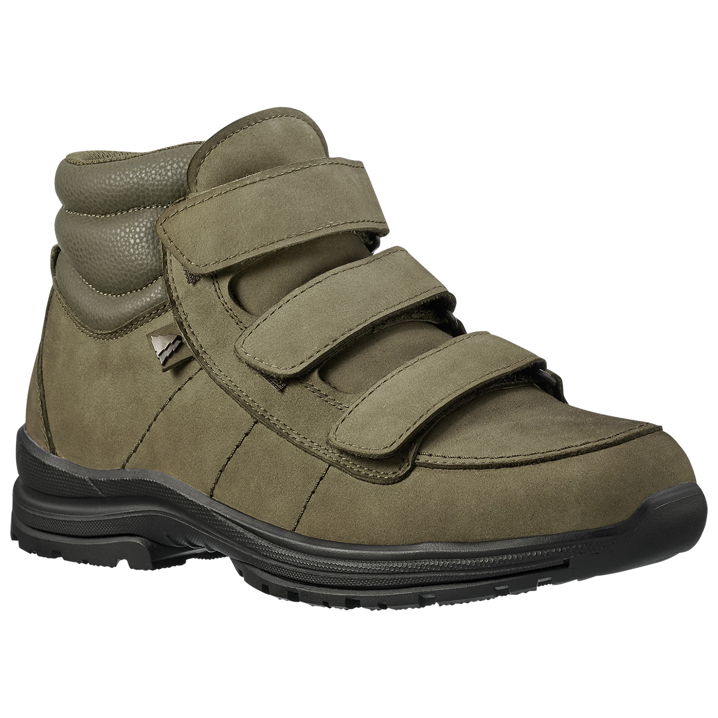 Bequemer, leichter Kletthalbstiefel aus Nubuk mit hohem Lauf- und Tragekomfort, bietet optimalen Halt und Stabilität am Fuß, Schuh mit großzügigem Einstieg, hohem gut gepolsterten Schaft, 3 Klettverschlüssen, auswechselbaren Fußbett und robuster, griffiger Gummiprofilsohle.