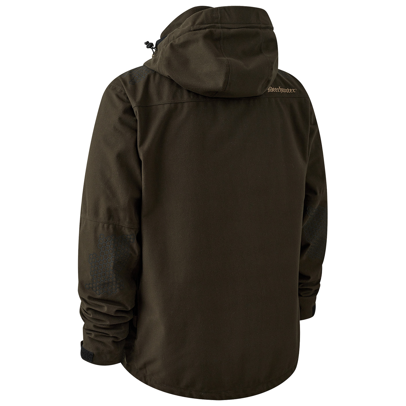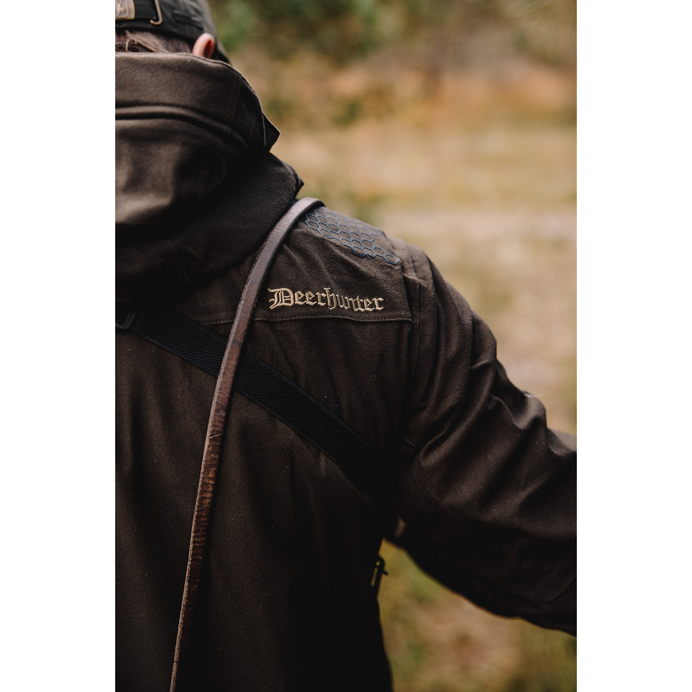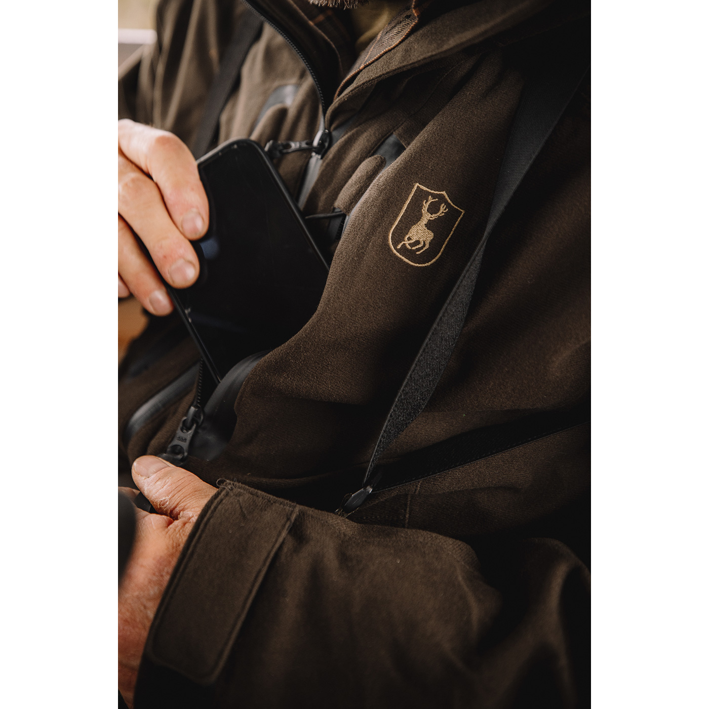 Die Jacke Game Pro Light von Deerhunter ist für den modernen Jäger entwickelt worden. Sie besteht aus wind- und wasserdichtem (Wassersäule 10.000mm) Material mit einer atmungsaktiven Deer-Tex® Performance Shell-Membrane und bewährt sich bei jedem Wetter. Mit ihren vielen praktischen Taschen kombiniert sie Komfort durch das leichte Gewicht mit praktischer Funktionalität – 2 Brusttaschen, 2 Fronttaschen je mit wasserdichten Reißverschlüssen und 2 Innentaschen bieten ausreichend Stauraum. Der Gummiprint an Schultern und Ellbogen erhöht die Haltbarkeit und Widerstandsfähigkeit in rauen Umgebungen und bietet zugleich Halt für den Gewehrriemen. Die Windbreaker an Ärmelbündchen haben praktische Löcher, um den ganzen Jagdtag hindurch immer rasch an die Armbanduhr zu gelangen. Verstellbarer Saum mit Gummizug für angenehme Passform, wasserdichter Reißverschluss an der Seitennaht zur Belüftung. Ein zusätzliches Plus ist das Reinigungstuch in der linken Brusttasche, für schnelle Säuberungen unterwegs. Die Game Pro Light Jacke verbindet praktische Funktionalität mit Zuverlässigkeit. Diese innovative Jacke sorgt für tolle Jagderlebnisse – sie ist zweckmäßig gestaltet, um die Herausforderungen auf der Pirsch zu erfüllen, und bietet Bequemlichkeit und Schutz in jedem Detail.