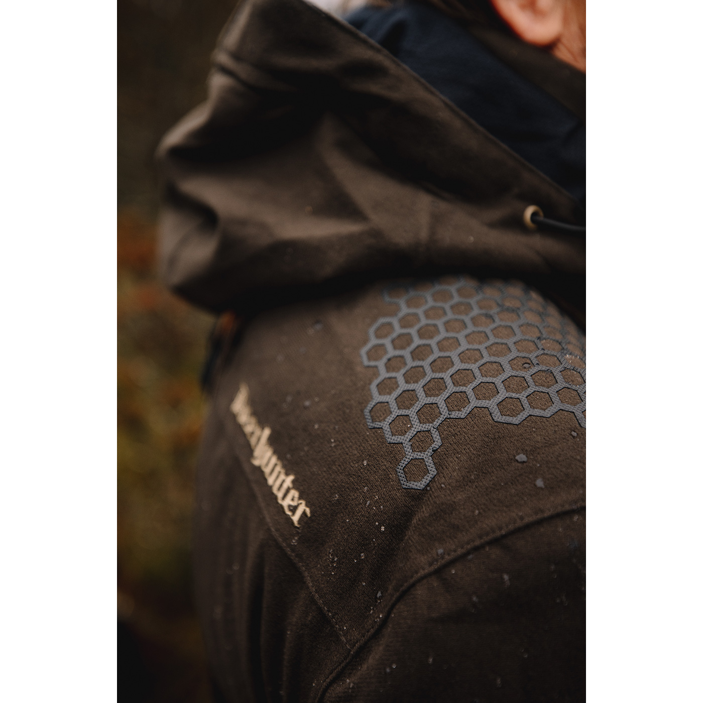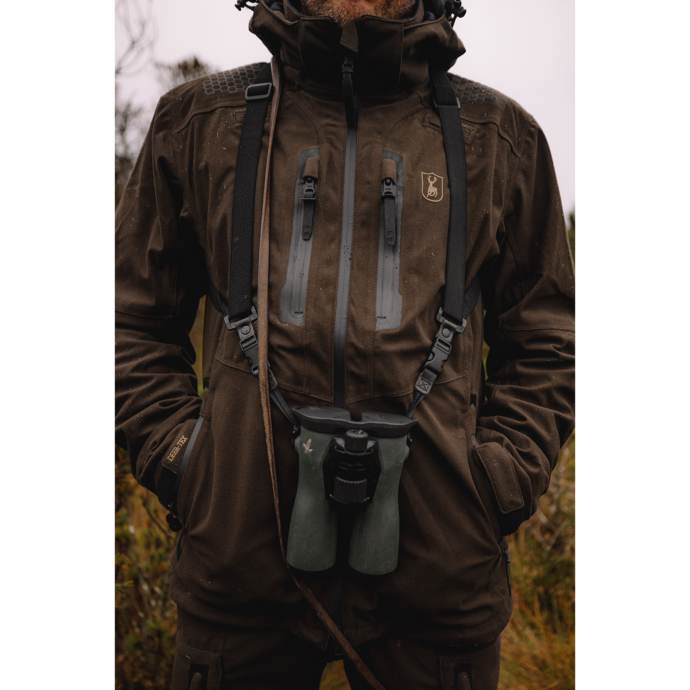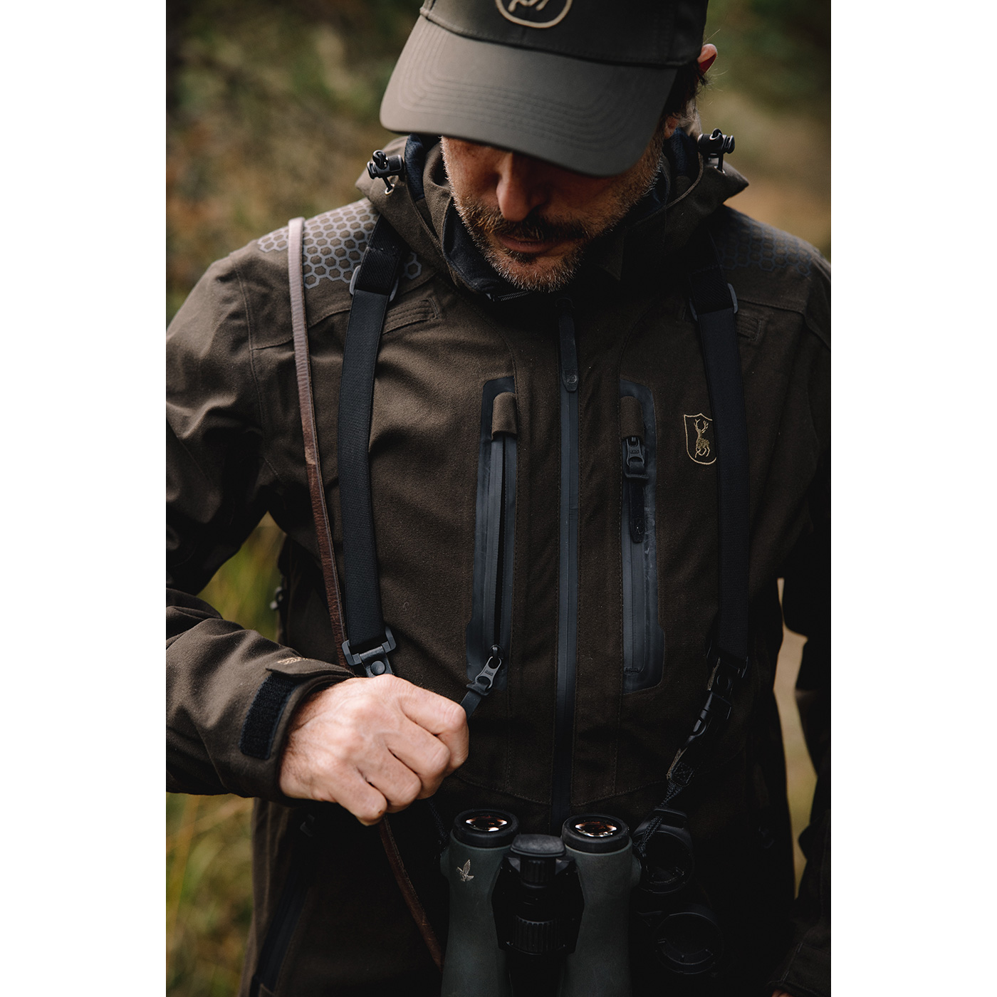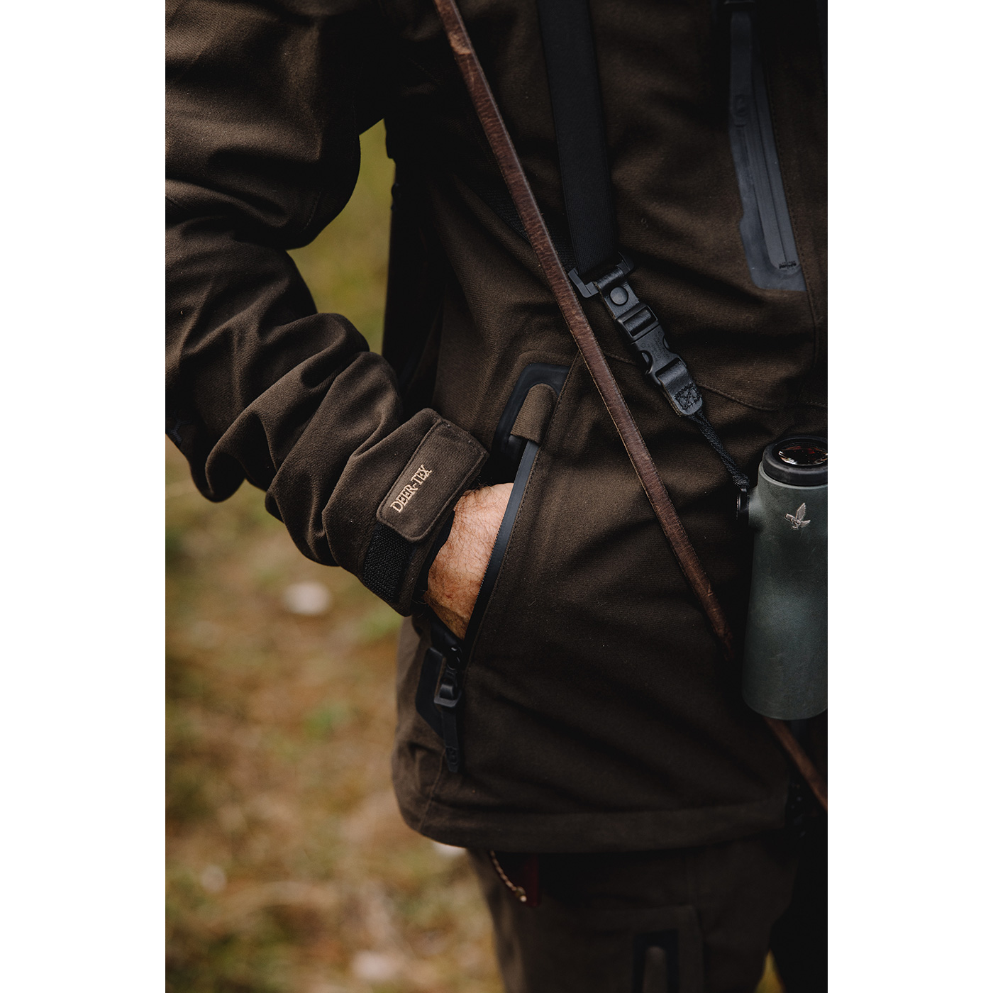 Die Jacke Game Pro Light von Deerhunter ist für den modernen Jäger entwickelt worden. Sie besteht aus wind- und wasserdichtem (Wassersäule 10.000mm) Material mit einer atmungsaktiven Deer-Tex® Performance Shell-Membrane und bewährt sich bei jedem Wetter. Mit ihren vielen praktischen Taschen kombiniert sie Komfort durch das leichte Gewicht mit praktischer Funktionalität – 2 Brusttaschen, 2 Fronttaschen je mit wasserdichten Reißverschlüssen und 2 Innentaschen bieten ausreichend Stauraum. Der Gummiprint an Schultern und Ellbogen erhöht die Haltbarkeit und Widerstandsfähigkeit in rauen Umgebungen und bietet zugleich Halt für den Gewehrriemen. Die Windbreaker an Ärmelbündchen haben praktische Löcher, um den ganzen Jagdtag hindurch immer rasch an die Armbanduhr zu gelangen. Verstellbarer Saum mit Gummizug für angenehme Passform, wasserdichter Reißverschluss an der Seitennaht zur Belüftung. Ein zusätzliches Plus ist das Reinigungstuch in der linken Brusttasche, für schnelle Säuberungen unterwegs. Die Game Pro Light Jacke verbindet praktische Funktionalität mit Zuverlässigkeit. Diese innovative Jacke sorgt für tolle Jagderlebnisse – sie ist zweckmäßig gestaltet, um die Herausforderungen auf der Pirsch zu erfüllen, und bietet Bequemlichkeit und Schutz in jedem Detail.