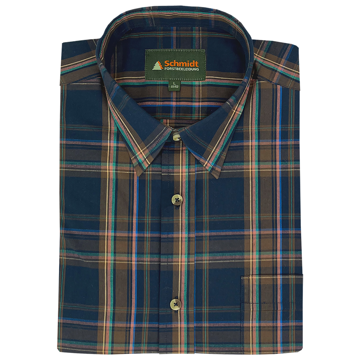 Klassisches Kurzarm-Karohemd von Schmidt mit Umlegekragen – der perfekte Begleiter für Ihr nächstes Outdoor-Abenteuer oder den Jagdausflug. Hergestellt aus hautsympathischer Baumwolle bietet dieses Hemd höchsten Tragekomfort, selbst bei längeren Einsätzen im Freien. Die bequeme Weite und die optimale Rückenlänge sorgen für eine ideale Passform. Die durchgehende Knopfleiste ist mit stilvollen Knöpfen in Naturoptik versehen, zudem gibt es links eine praktische Brusttasche mit Knopfverschluss für zusätzlichen Stauraum von kleinen Utensilien. Ob auf der Pirsch oder beim Wandern – mit diesem Karohemd sind Sie immer gut ausgestattet.