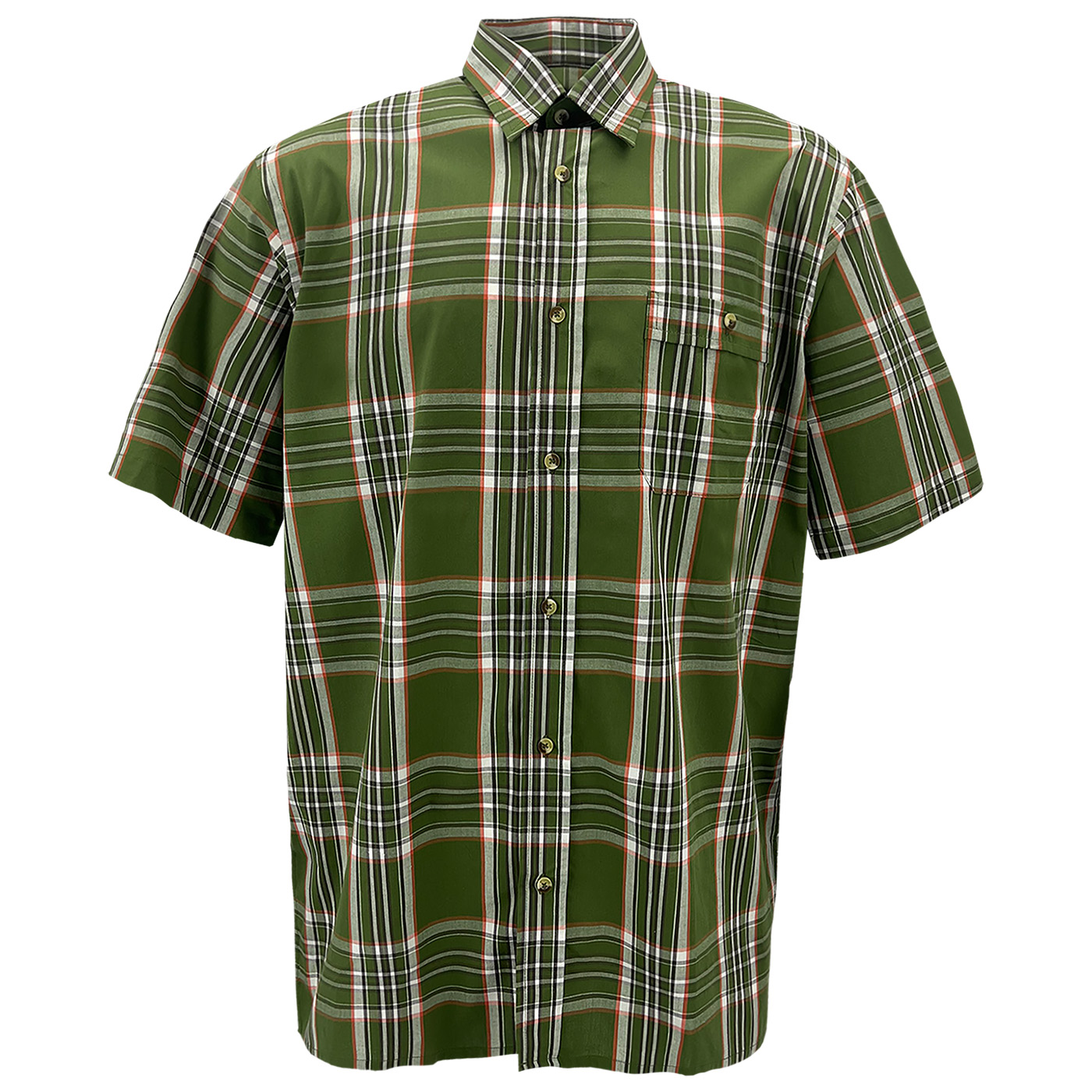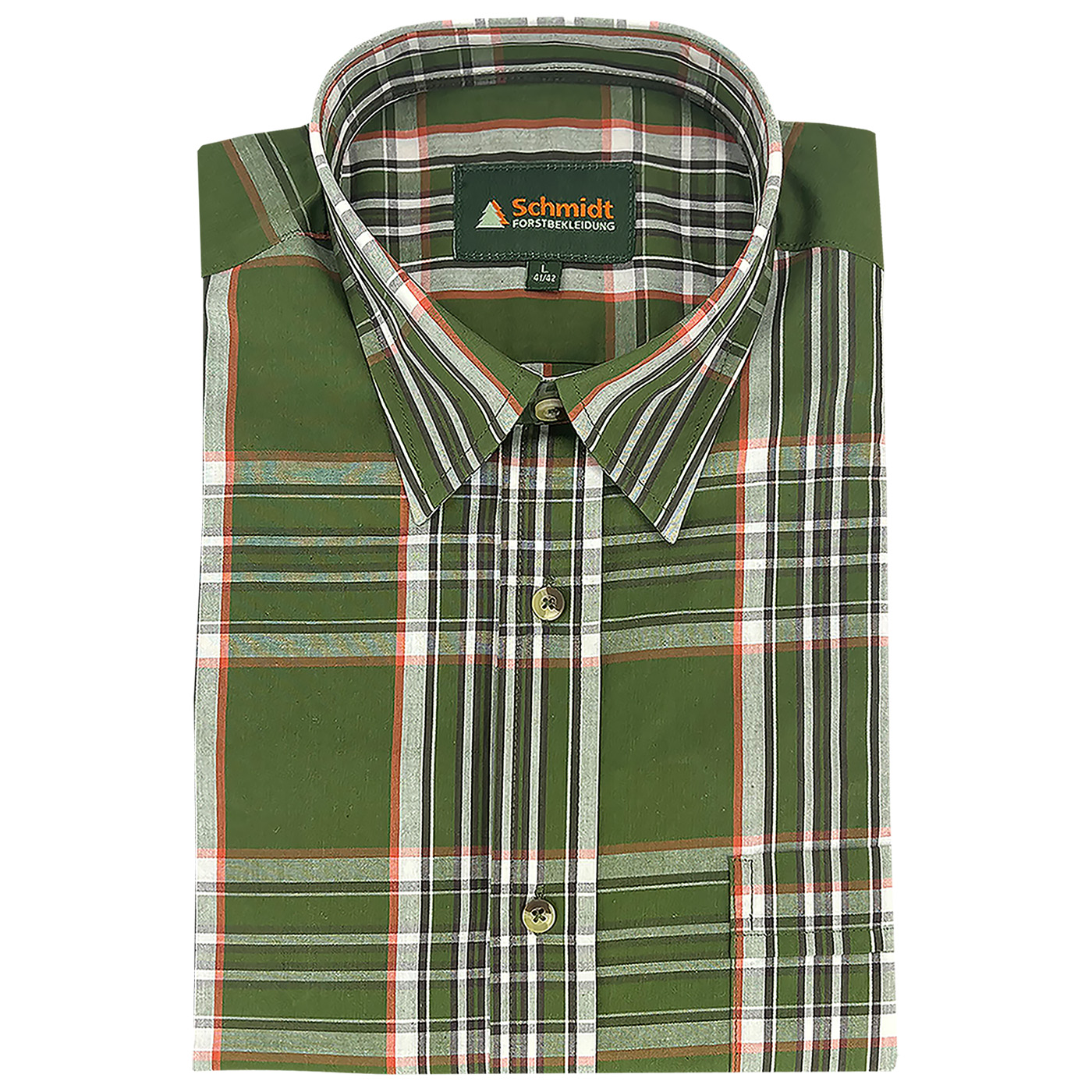 Klassisches Kurzarm-Karohemd von Schmidt mit Umlegekragen – der perfekte Begleiter für Ihr nächstes Outdoor-Abenteuer oder den Jagdausflug. Hergestellt aus hautsympathischer Baumwolle bietet dieses Hemd höchsten Tragekomfort, selbst bei längeren Einsätzen im Freien. Die bequeme Weite und die optimale Rückenlänge sorgen für eine ideale Passform. Die durchgehende Knopfleiste ist mit stilvollen Knöpfen in Naturoptik versehen, zudem gibt es links eine praktische Brusttasche mit Knopfverschluss für zusätzlichen Stauraum von kleinen Utensilien. Ob auf der Pirsch oder beim Wandern – mit diesem Karohemd sind Sie immer gut ausgestattet.
