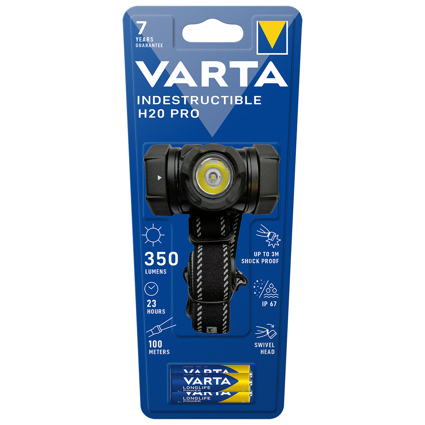 Egal wie groß die Herausforderung ist, die VARTA Kopflampe Indestructible H20 Pro wird sie meistern. Durch ihre robuste Konstruktion mit gummierten Elementen, eloxiertem Aluminium, wasserdichten, staubdichten und stoßabsorbierenden Eigenschaften sind sie extrem robust und für maximale Haltbarkeit und Verlässlichkeit entwickelt worden. Auf diese Weise können sie auch unter härtesten Bedingungen viel Licht liefern. Inkl. VARTA Batterietype: 3 x Longlife Power AAA, Gewicht inkl. Batterien: 108,7g, Länge: 4,7cm