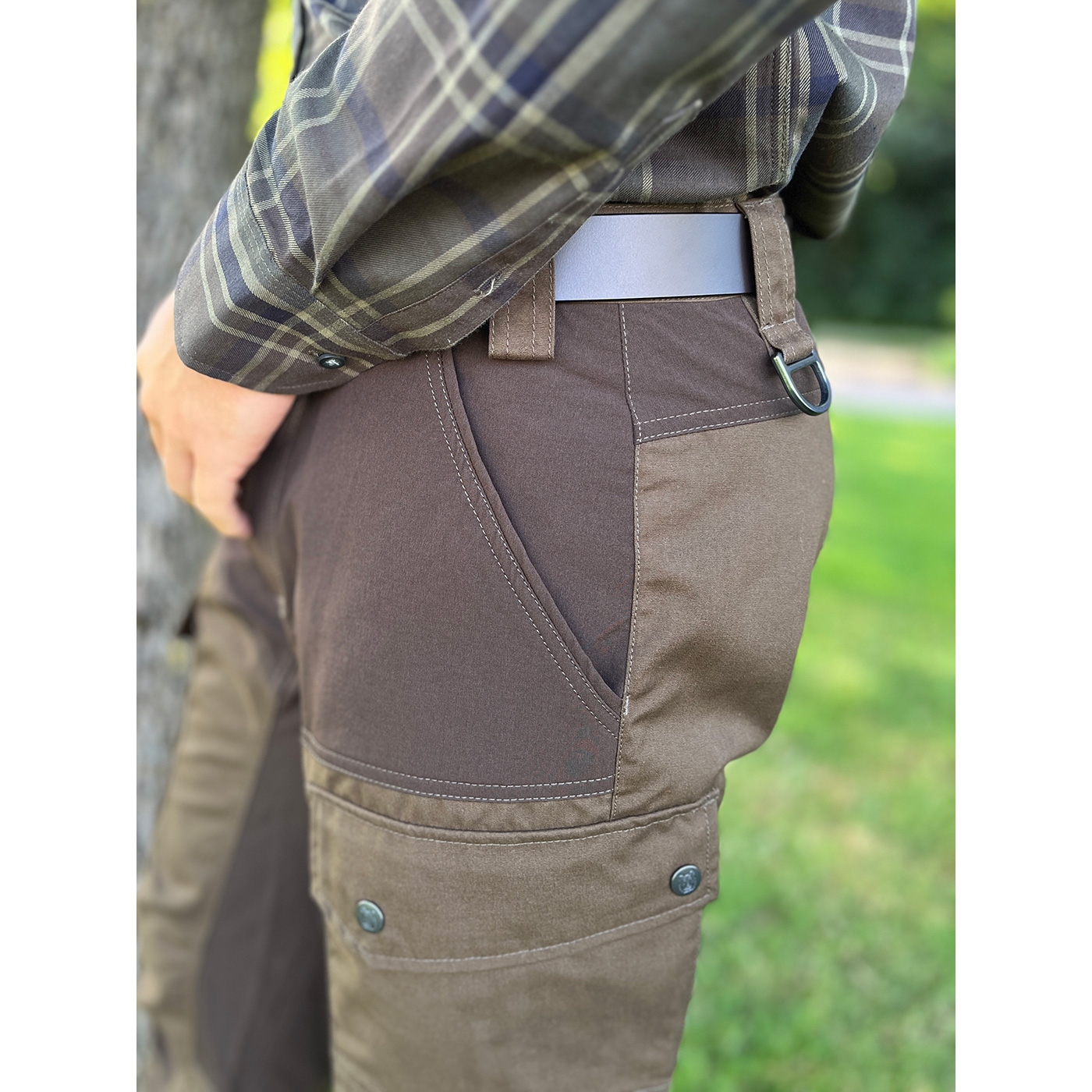 Die Rensing Outdoor-Stretchhose Alder in oliv/braun ist die perfekte Outdoor-Hose für Ihre nächste Jagd. Diese Hose kombiniert Funktionalität und Komfort und ist ideal für anspruchsvolle Outdoor-Aktivitäten. Sie bietet ausreichend Stauraum, 2 Seitentaschen, 2 Beintaschen mit Druckknopf-Verschluss, 1 Gesäßtasche mit Reißverschluss, sowie breite Gürtelschlaufen und Stretcheinsätze für optimale Passform und Bewegungsfreiheit. Mit ihren durchdachten Details und robusten Materialien ist sie der perfekte Allrounder für die Jagd, beim Hundesport, Freizeit und andere Outdoor-Erlebnissen.
