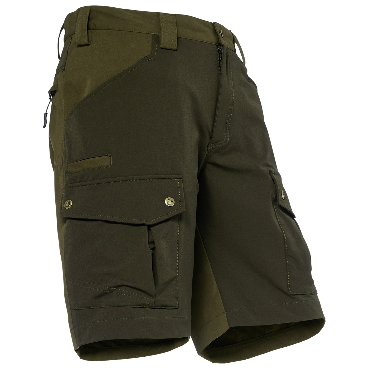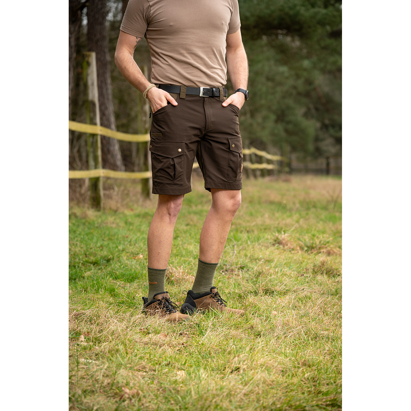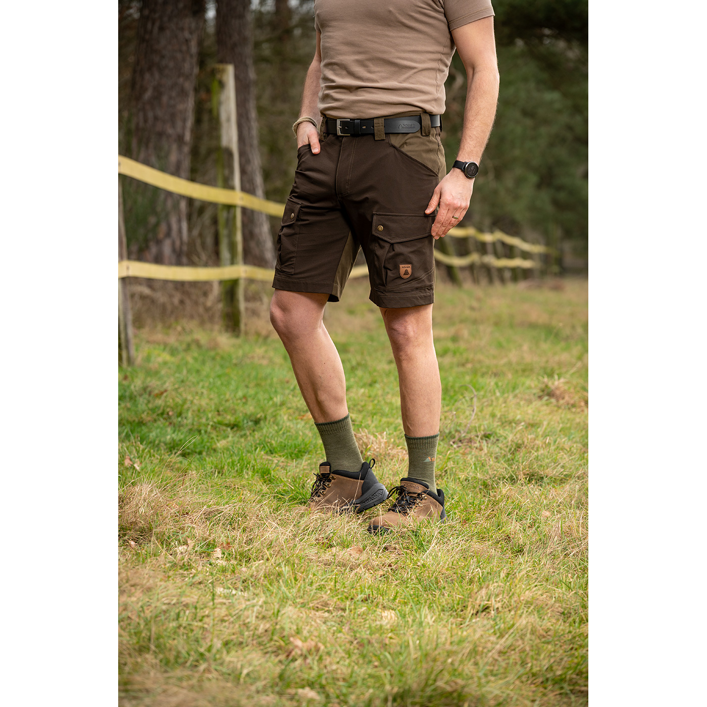 Die Outdoor-Stretchshorts Siegen von Schmidt in braun/oliv ist die optimale, leichte Shorts für Jagd, Alltag und andere Outdoor-Aktivitäten. Diese Shorts kombiniert Funktionalität und Komfort, sie bietet ausreichend Stauraum mit 2 Seitentaschen, 2 Beintaschen mit Druckknopf-Verschluss und 1 großzügige Gesäßtasche mit Reißverschluss. Die breiten Gürtelschlaufen und die braunen Stretcheinsätze sorgen für optimale Passform, ein ausgezeichnetes Tragegefühl und ausreichende Bewegungsfreiheit. Mit dieser robusten, stilvollen Material-Kombination ist sie der perfekte Allrounder - bequem, elastisch, nachgiebig und anpassungsfähig. Bei langen Wanderungen in der Sonne, Revierarbeiten im Wald, beim Hundesport oder bei entspannten Trekkingtouren haben Sie eine Outdoorshorts mit höchstem Tragekomfort. Waschbar bei 40°C