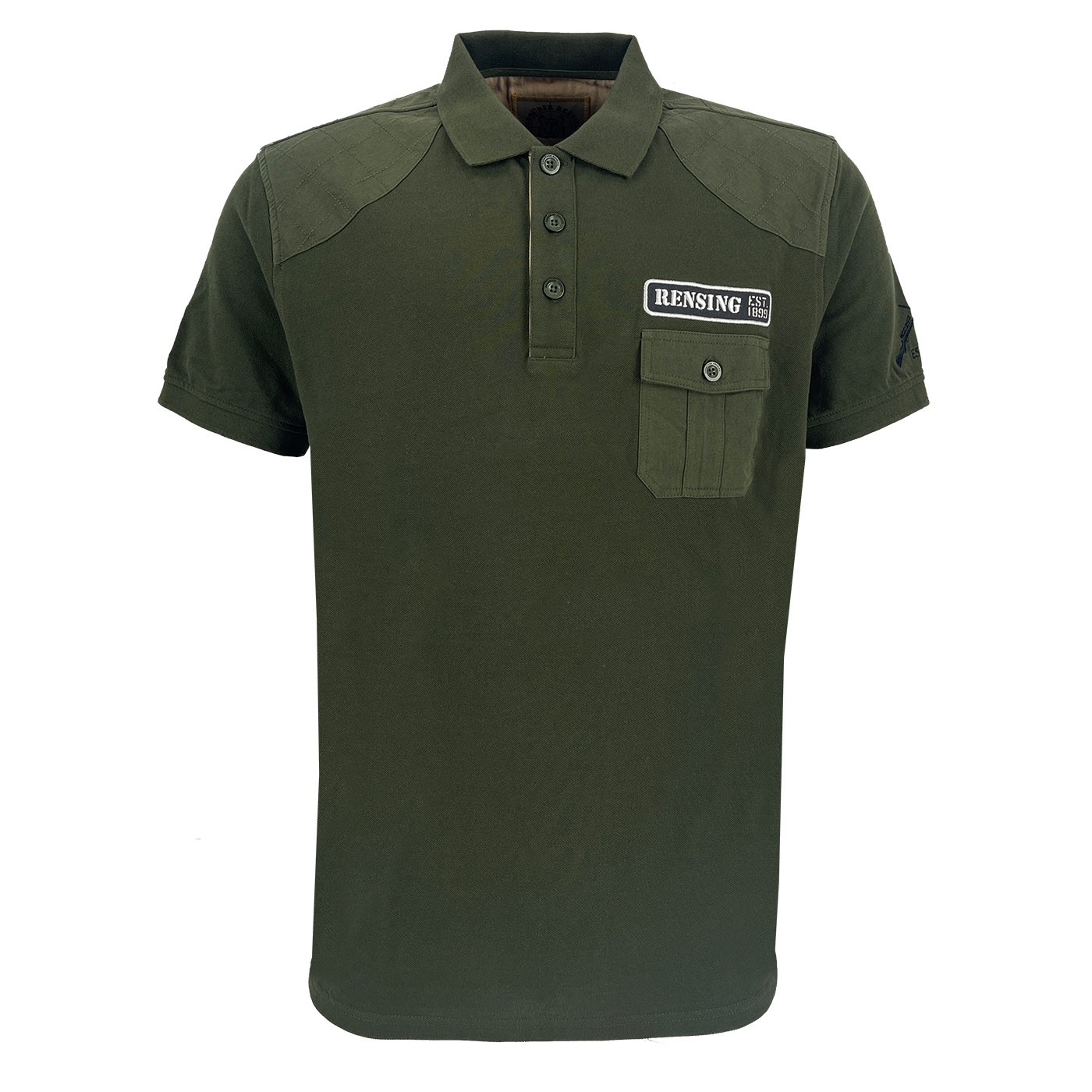 Das Rensing Polo-Shirt in oliv ist das perfekte Kleidungsstück für Jagd- und Outdoor-Enthusiasten. Das Poloshirt überzeugt mit Details, wie den Schulterbesatz und die praktische Brusttasche mit Knopf. Der aufgestickte Rensing-Schriftzug auf der Brust, die Logos an den Ärmeln und die beige Knopfleiste setzen stilvolle Akzente. Ideal für Abenteuer in der Natur oder entspannte Tage im Freien.