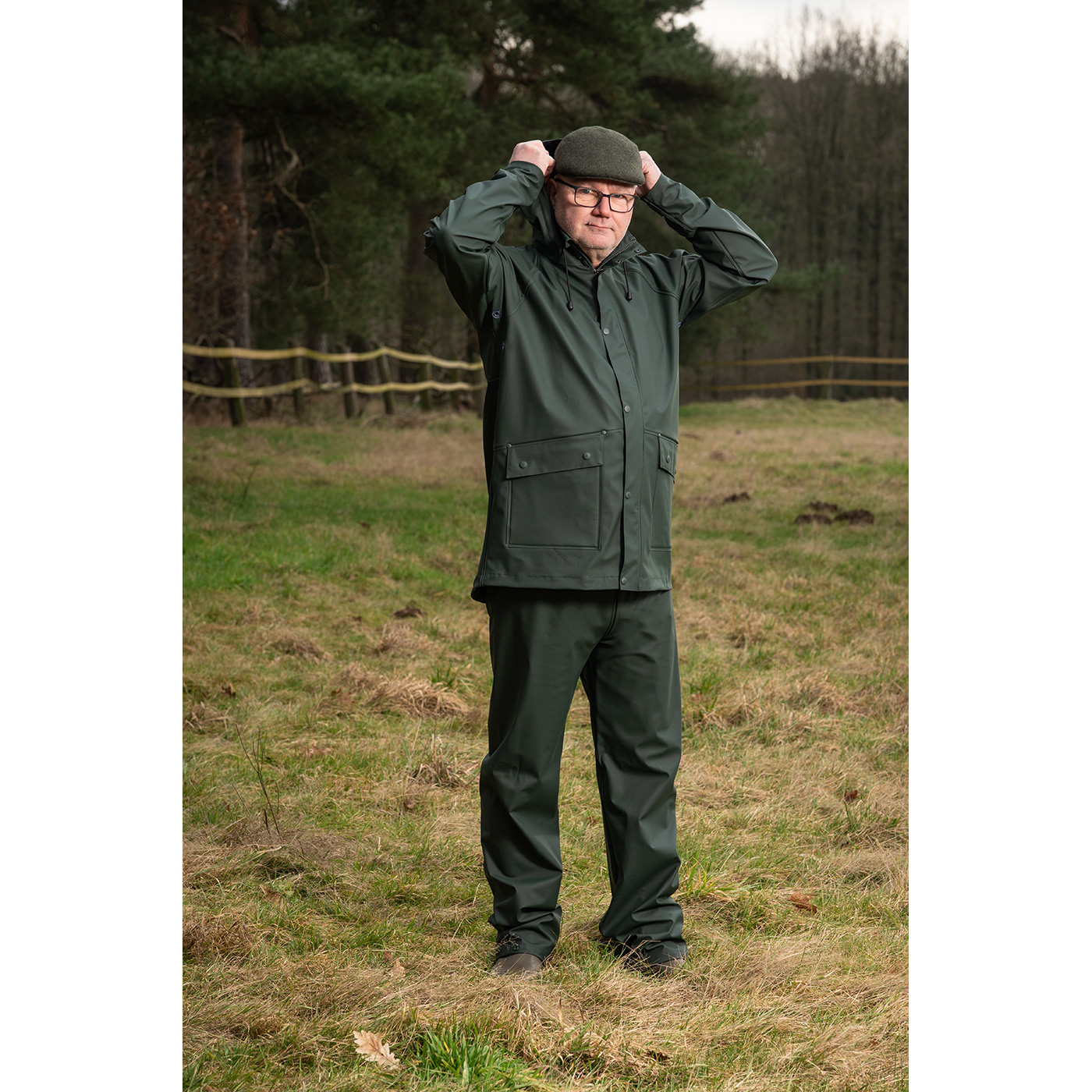 Das Schmidt Regenset Monsum – funktionale Kombination aus Regenjacke und Regenhose - 100% wasserdicht, mit verschweißten Nähten in qualitativ hochwertiger schwerer Premium-Qualität, ist bestens geeignet für Jagd, Alltag und andere Outdoor-Aktivitäten.