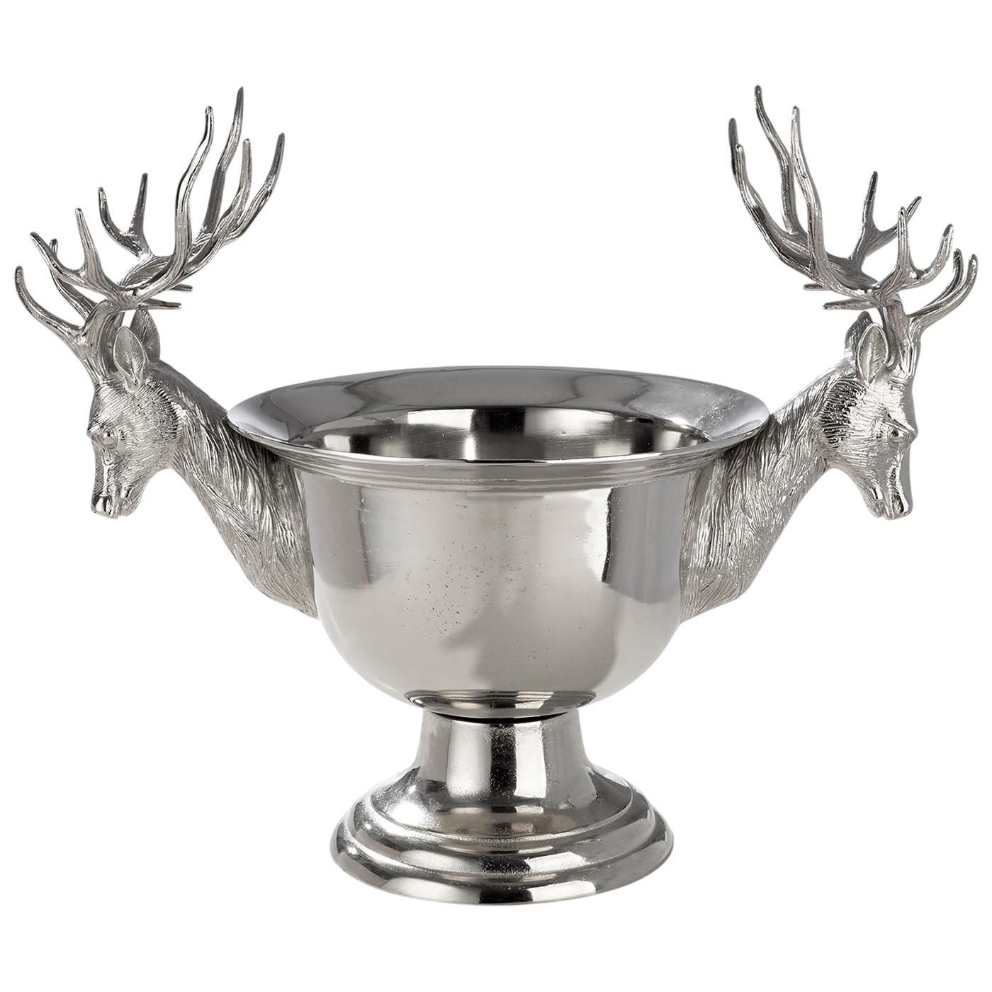 Höchst dekorative, edle, silberfarbene Schüssel aus Aluminium, die als Sektkühler oder als Weinkühler Ihren Feierlichkeiten den nötigen Schliff gibt. Mit Filzgleiter unter dem Fuß, um Kratzer zu vermeiden