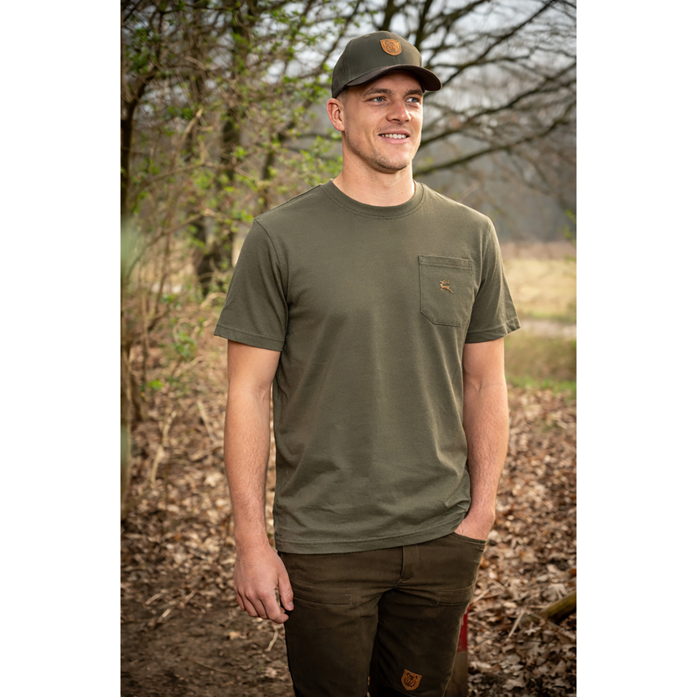 - 1 aufgesetzte Brusttasche mit dezenter Hirsch-Stickerei