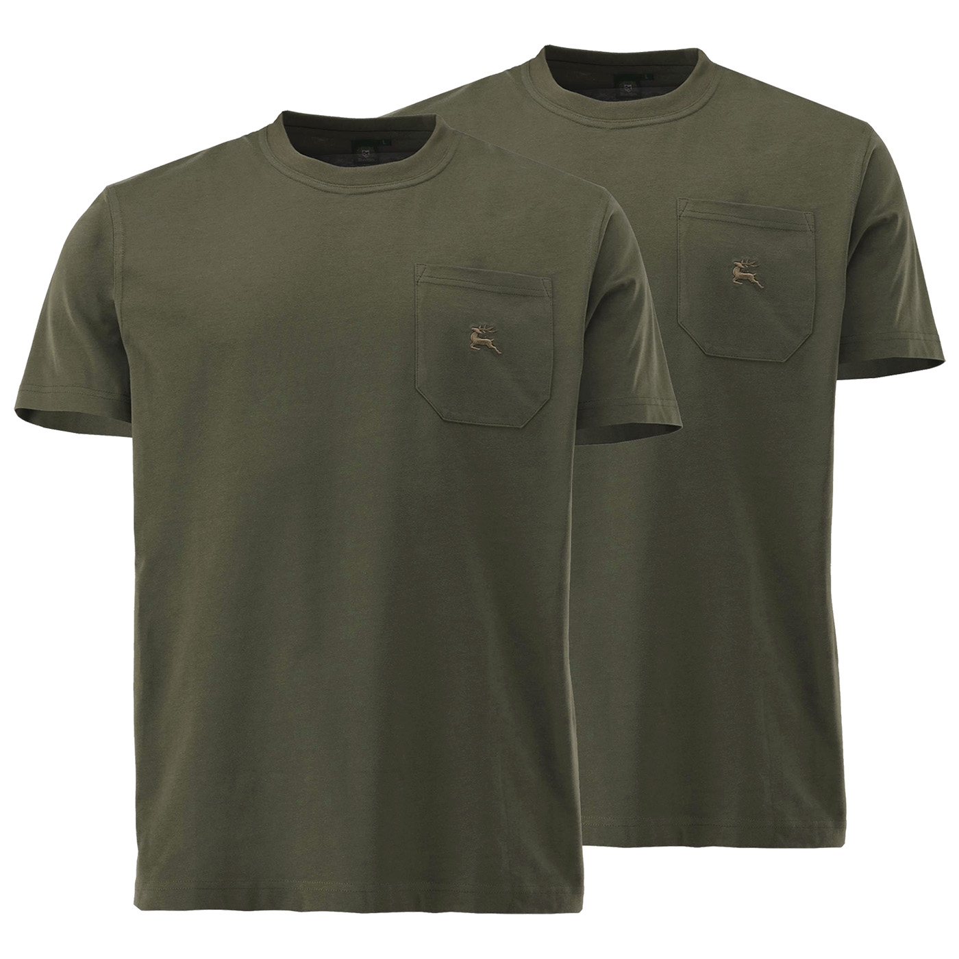 T-Shirt aus hautsympathischer Baumwollqualität als Doppelpack von OS Trachten®. Klassisches T-Shirt mit Rundhalsausschnitt und aufgesetzter Brusttasche mit dezenter Hirsch-Stickerei auf der linken Brust für wichtige Utensilien, in bequemer Weite. Diese T-Shirts sind angenehm zu tragen und zugleich sehr strapazierfähig, die optimale Wahl für Jagd, Freizeit und Alltag. Bitte Waschhinweise beachten.