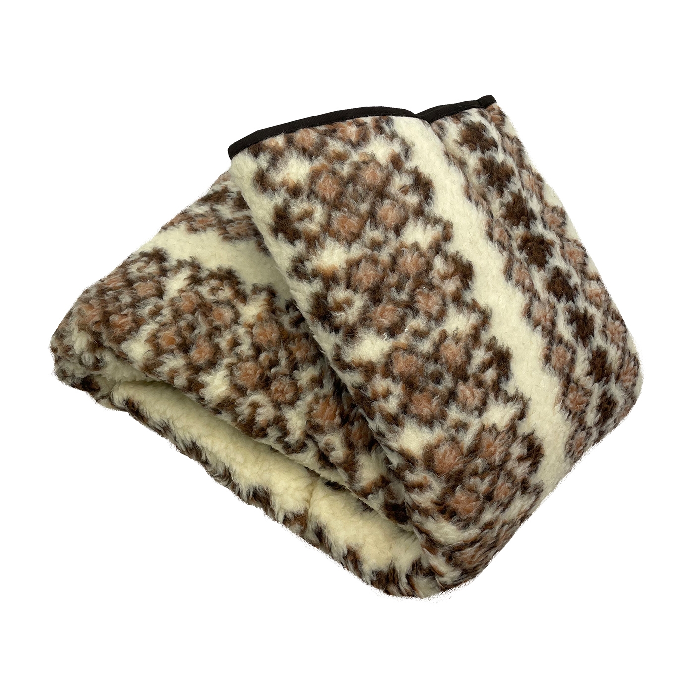 Flauschige, dekorative Wohndecke mit braun/beiger Musterung (gelieferte Decke im Muster ähnlich wie Abbildung). Natürliche Wärme durch Schurwolle. Weich, warm und aktmungsaktiv, mit Bandeinfassung. Maße: ca. 150 x 200cm.